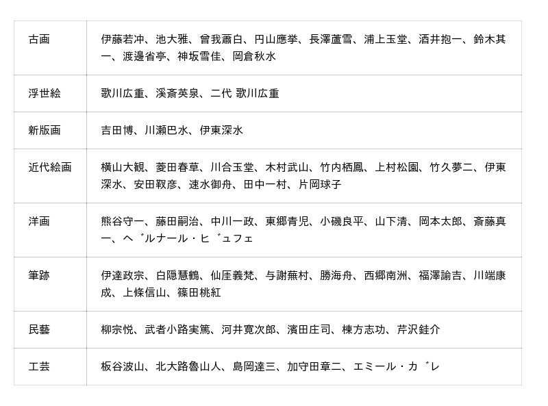 また、江戸初期~末期にかけて栄えた大津絵、大正~昭和を代表する日本画家・伊東深水を特集いたします。