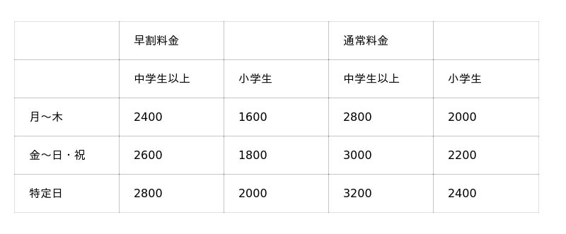 ※障がい者割引がございます。身体障害者手帳、療育手帳、精神障害者保健福祉手帳、ミライロID等をお持ちの方ご本人及び介護者1名までが対象となります。