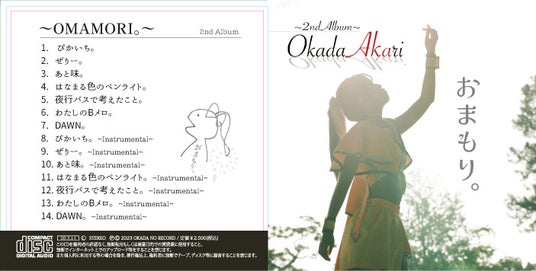 2ndアルバム『おまもり。』は、“心が折れそうなときに聞いてほしい曲(おまもり)”をコンセプトに制作された力作です。タイトルが象徴するように、この作品は聞き手一人ひとりの人生に寄り添い、困難や迷いを抱える瞬間でも手放せない「心のお守り」のような存在でありたいという強い思いが込められています。アルバムには岡田朱梨のシンガーソングライターとしての成熟が表れた楽曲が多数収録されており、等身大の言葉、メロディライン、そしてストレートな感情表現が特徴です。癖のない真っ直ぐで力強い歌声が、聴く者の心の奥底まで届く構成となっています。