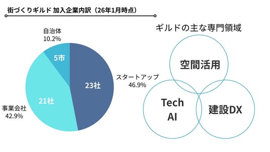 本ギルドは、こうした分断を越え、STATION Aiを起点に49社(自治体5市/事業会社21社/スタートアップ23社 ※2026年1月時点)が参画する横断的ネットワークを形成。