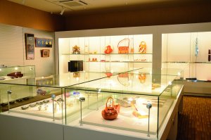 下町の歴史と風土の中で育まれた伝統工芸品、約48業種約250点を展示している。江戸すだれや東京桐タンス、江戸指物などがずらり。週末には職人による製作実演も行っている。