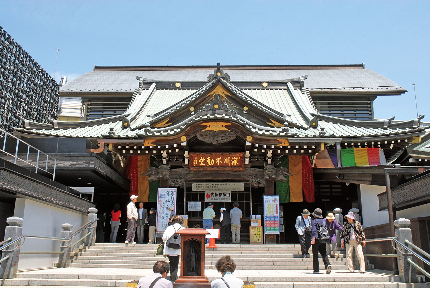 元禄16年(1703)、「成田山新勝寺」の御本尊の出開帳をしたのが始まり。新勝寺の東京別院で、「深川のお不動様」として親しまれる。旧本堂は江東区内最古の木造建築だ。