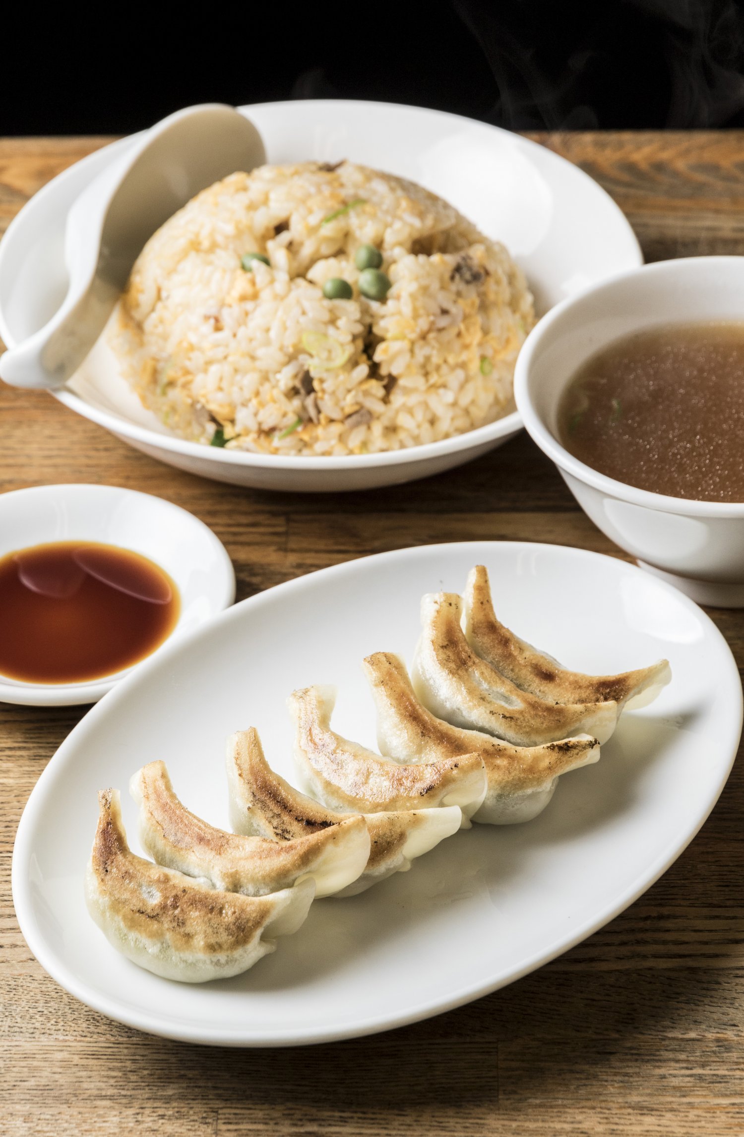 まかない飯をお客の要望でメニュー化した、珍しい餃子入りらーめんを提供。濃い味の醤油スープに泳ぐ餃子はモチモチとしていて、食べ応えさらにアップだ。