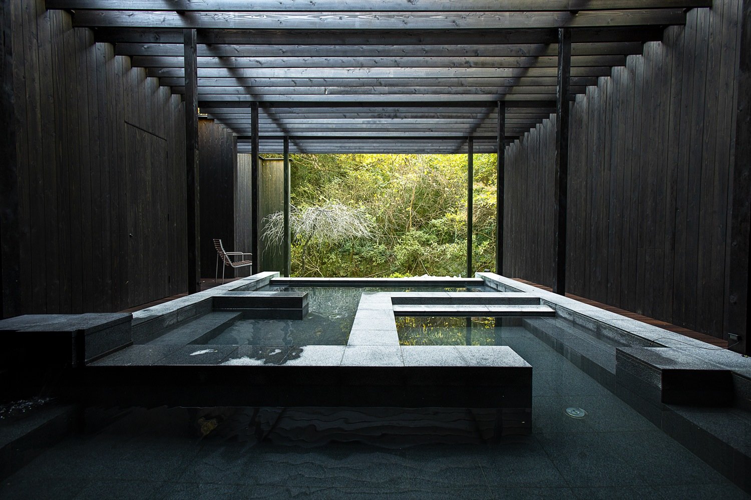 「惣湯」は遠い昔、中世の頃に村人たちが作り、大切に守っていた共同湯の呼び名だ。2021年8月、今の時代にふさわしい、新しい惣湯が万葉公園内に生まれた。「惣湯テラス」は、周囲の景観に調和して立つ。館内はシンプルで、BGMも時計もない。湯浴(あ)みの間に間に「ライブラリー」や「奥のラウンジ」で本を開く。食事メニューは月替わり。自然の恵み満載の料理が漆器の応量器に盛られる。