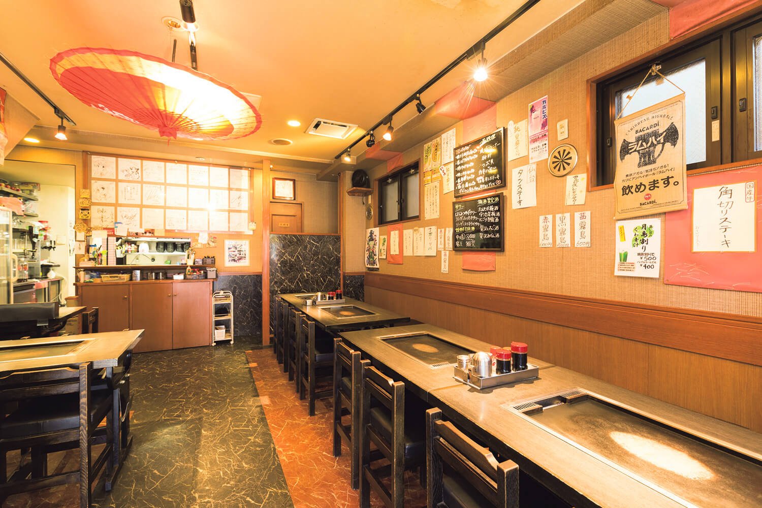 もんじゃストリートの横の小道に立つ、店主が親子2代で築いた店。コテと鉄板がカン!カン!と小気味いいリズムを奏でながら、目の前で絶品のもんじゃがあっという間に出来上がる。
