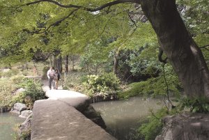徳川綱吉の側用人を務めた柳澤吉保の設計。和歌にちなむ名勝の景観八十八カ所を造った回遊式築山泉水庭園。樹齢約70年というシダレザクラが咲く花見と紅葉狩りの名所。