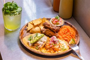 名物は、北海道産トウモロコシ粉100%の自家製トルティーヤ生地を使ったタコス。もちもちとしてやわらかい生地は噛むほどに旨味が広がり、口中を満たすトウモロコシが香ばしい。一人でつまむなら、定番タコス2種にチキンウィングやチップスなどを合わせたグラシャスセットを。爽快な辛さのサルサソースやアボカドソースでタコスが進む。