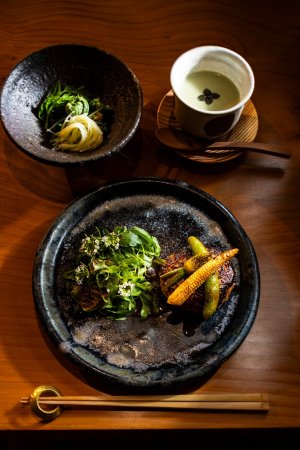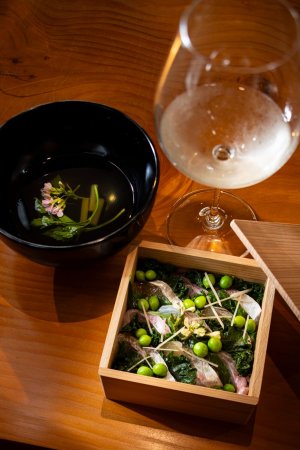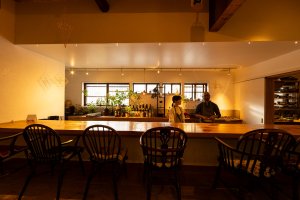 大磯駅から徒歩15分。築80年の平屋の中に入ると、古いものと新しいものが溶け合ったやわらかな空間が広がる。月替わりのコースをはじめ、どのコースも季節野菜をふんだんに使用。日本酒も日々ラインアップが変わり、日常的に通いたくなる料理店だ。
