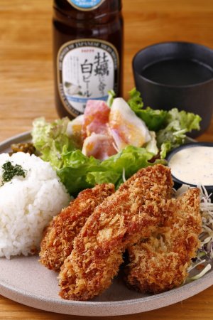 鵠沼海岸駅から徒歩4分の場所に、2024年オープンしたオイスターバー。北海道から九州までさまざまな産地で育った個性的な生ガキが、常時6、7種類揃う。カキに合うビールや日本酒もセレクトされているので、好みのペアリングを楽しもう。