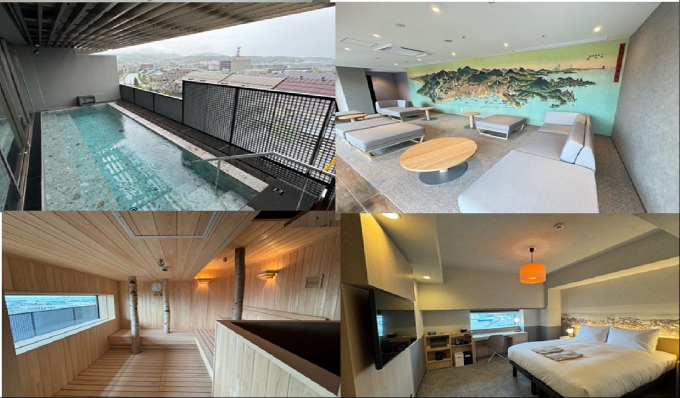6階の展望露天風呂からは石狩湾を一望。宿泊者専用の施設で、白樺香るオートロウリューサウナや水深1.2mの水風呂、外気浴スペースも完備し、“ととのう”空間が充実。