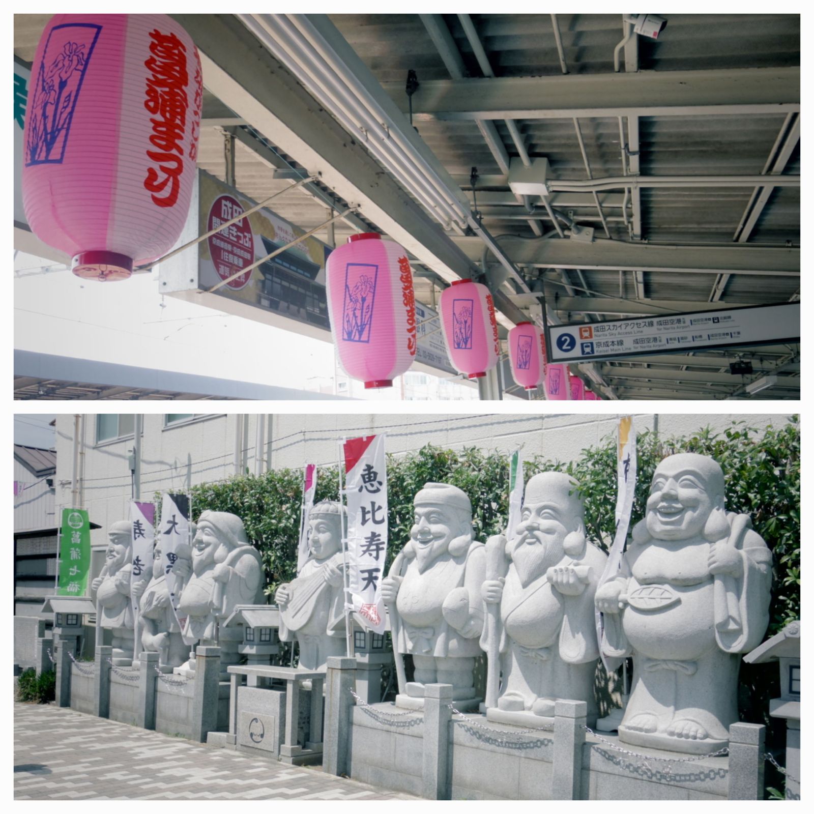 途中、なつかしさ溢れる出立ちの個人商店の多さに目を奪われたり、大きな七福様方にご挨拶し、色とりどりの紫陽花を愛でたりしつつ、駅から徒歩約10分。堀切菖蒲園に無事到着。