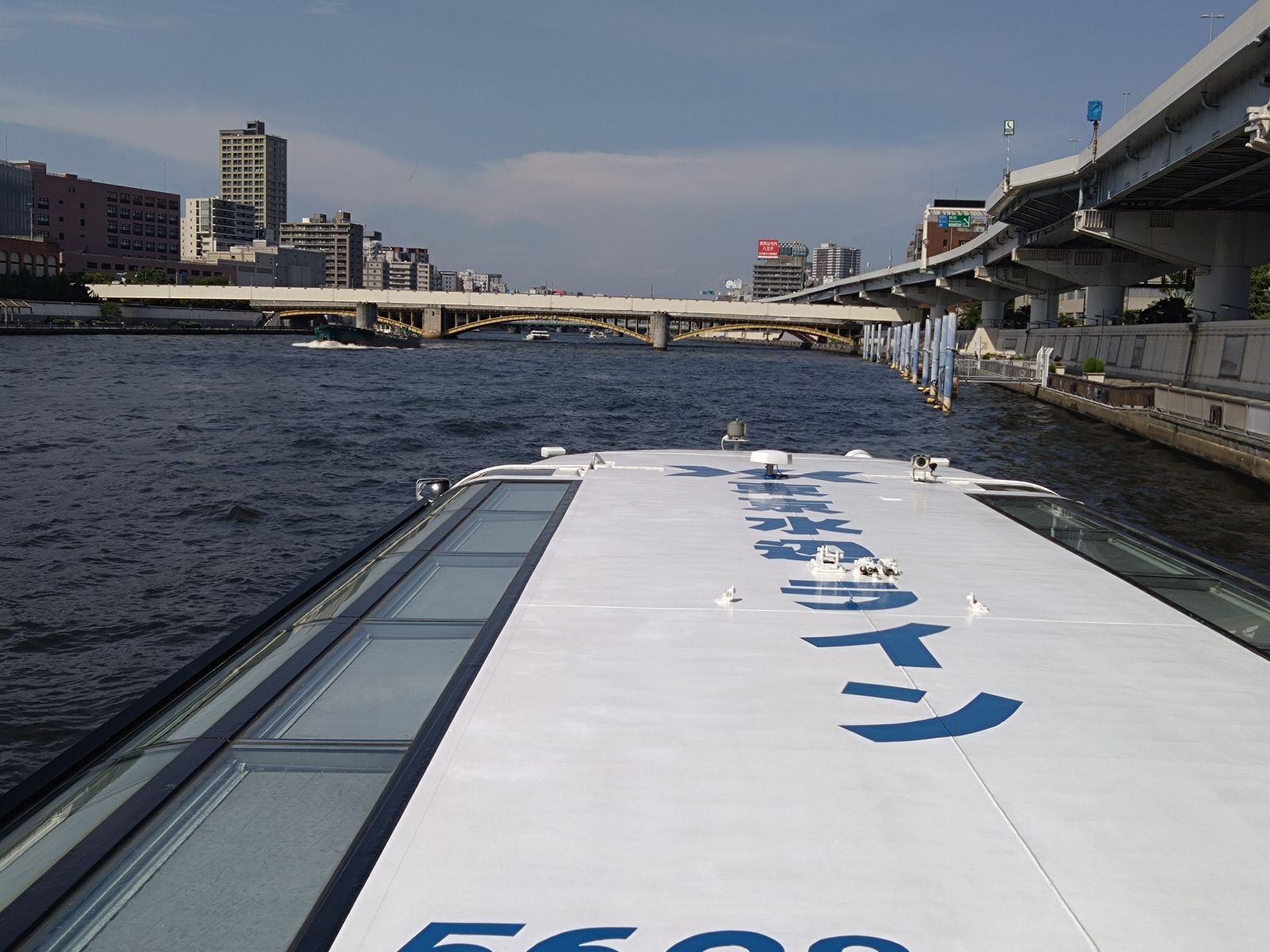 両国→浅草二天門間が片道400円。遠回り?なんだろうと思ったら、一度お台場に行ってから戻ってくるそうで、2800円で可能とのことです。
