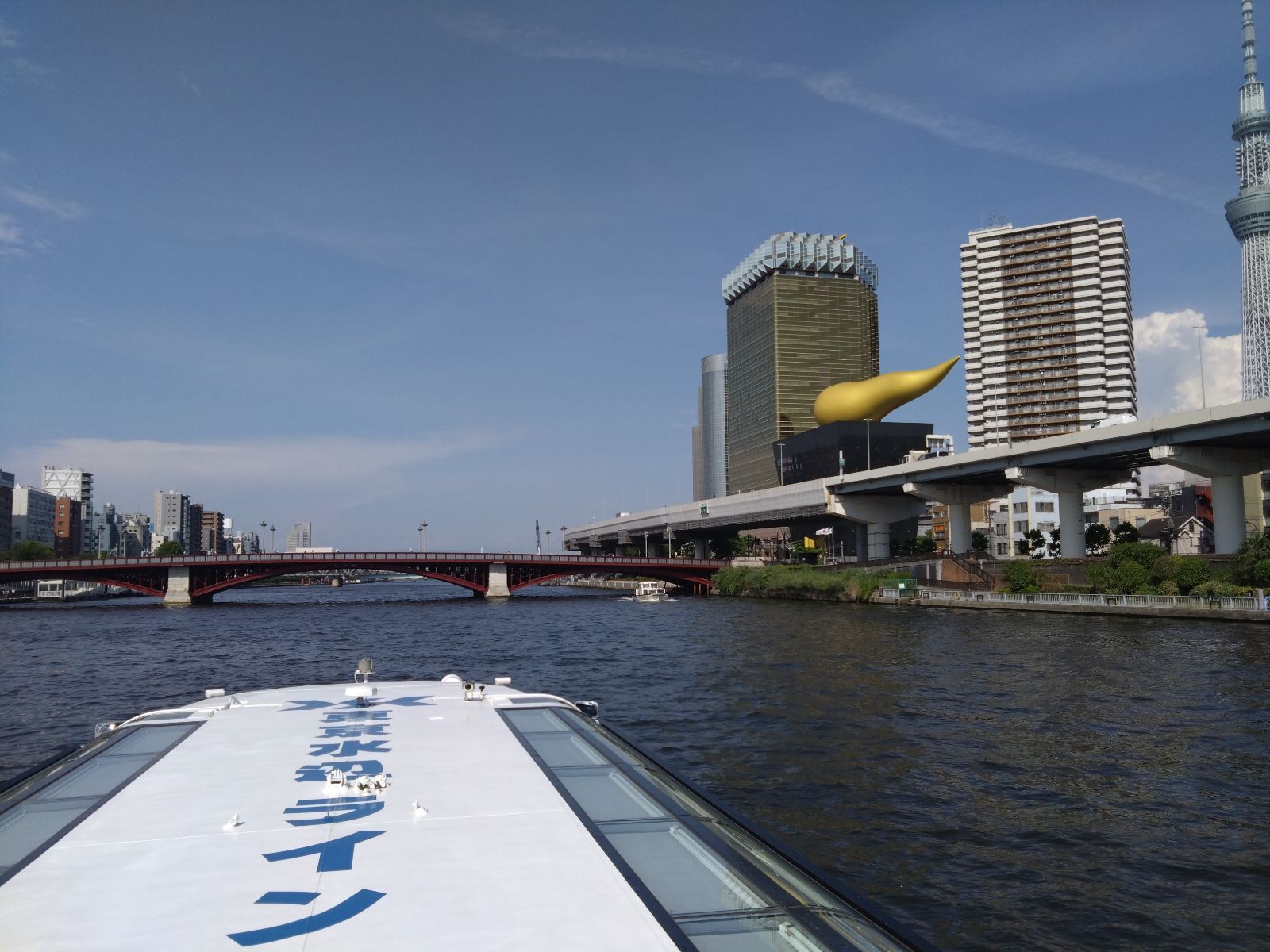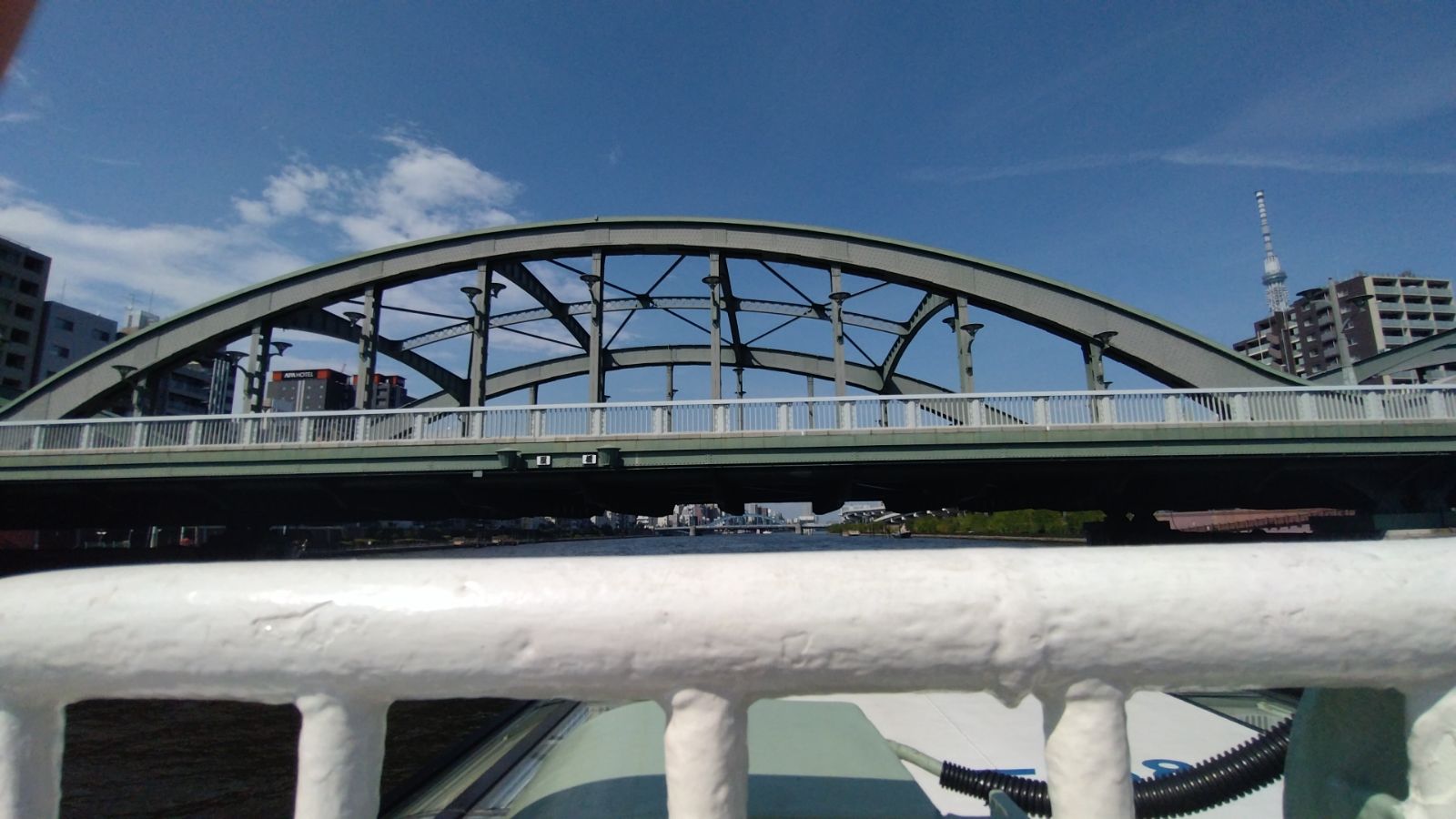 今日は人通りが少ないなあ、平日だからかな?と吾妻橋をくぐったら船着場に到着です。日の出桟橋からの船より上流の東武線の向こう側に泊まりました。