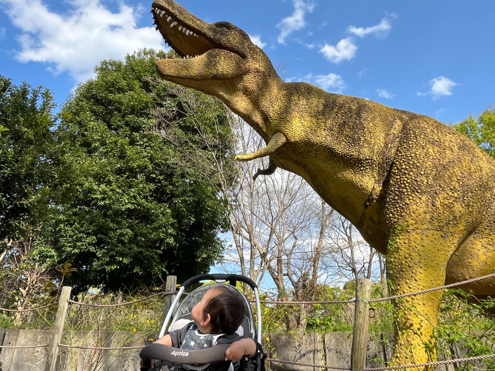 そして歩いてて突然出くわすのが……巨大な恐竜の展示物!