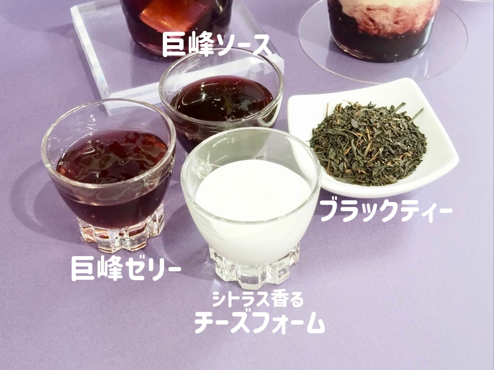 巨峰のコクと深みのある味わいを引き立てるブラックティーに、ジューシーな巨峰ゼリーと濃厚な巨峰ソースがブレンドされています。