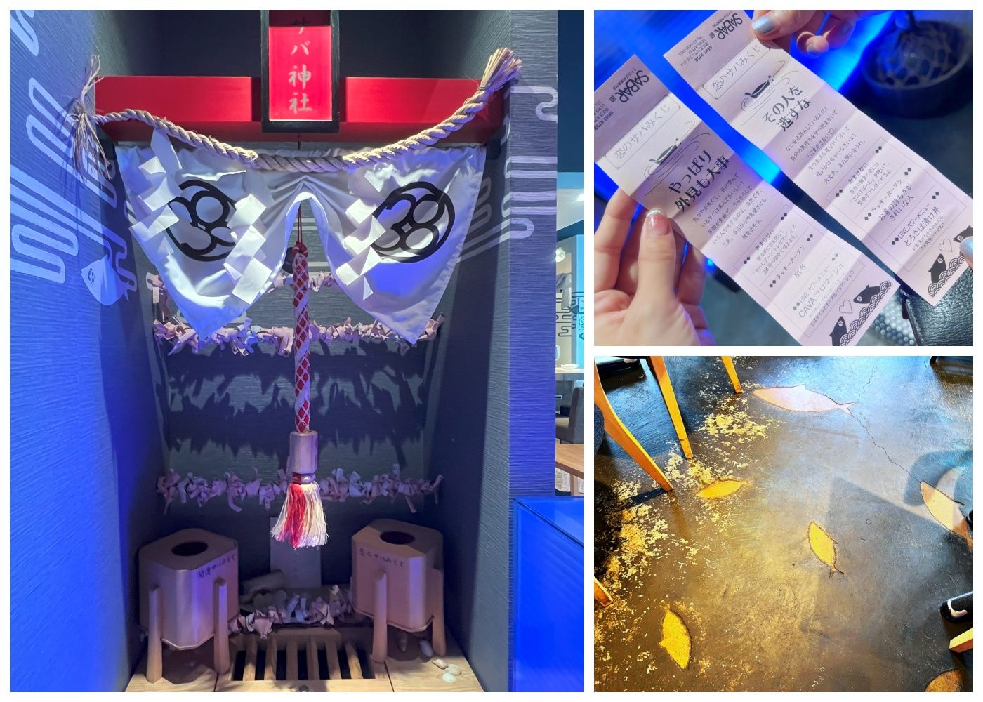 入り口の左脇には「サバ神社」もあり、お賽銭をすると、サバにちなんだおみくじに挑戦できます。遊び心のある演出が面白いですね!