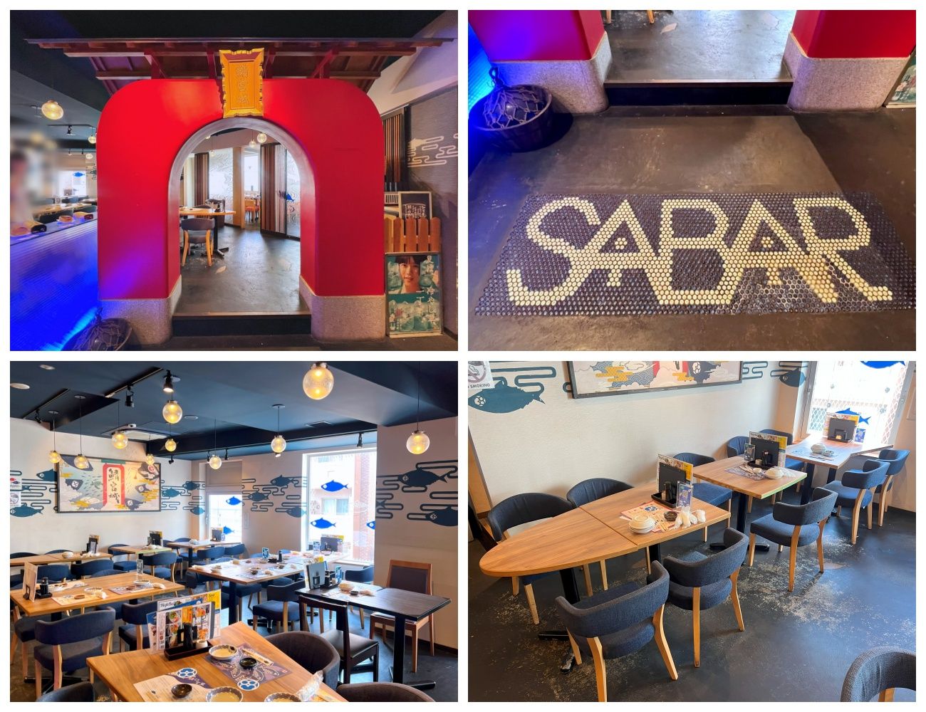 今回訪れた「とろさば料理 海鮮居酒屋 SABAR 浜松町大門店」は、一歩足を踏み入れると、そこはまるで「鯖宮城」の世界。床には魚の模様、テーブルはサバの形、チェアは海のような青色で統一され、壁にはたくさんのサバが泳いでいます。気持ちよさそう♪