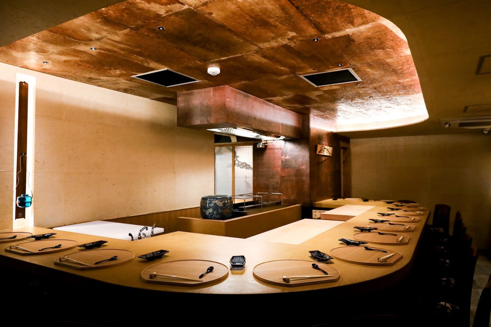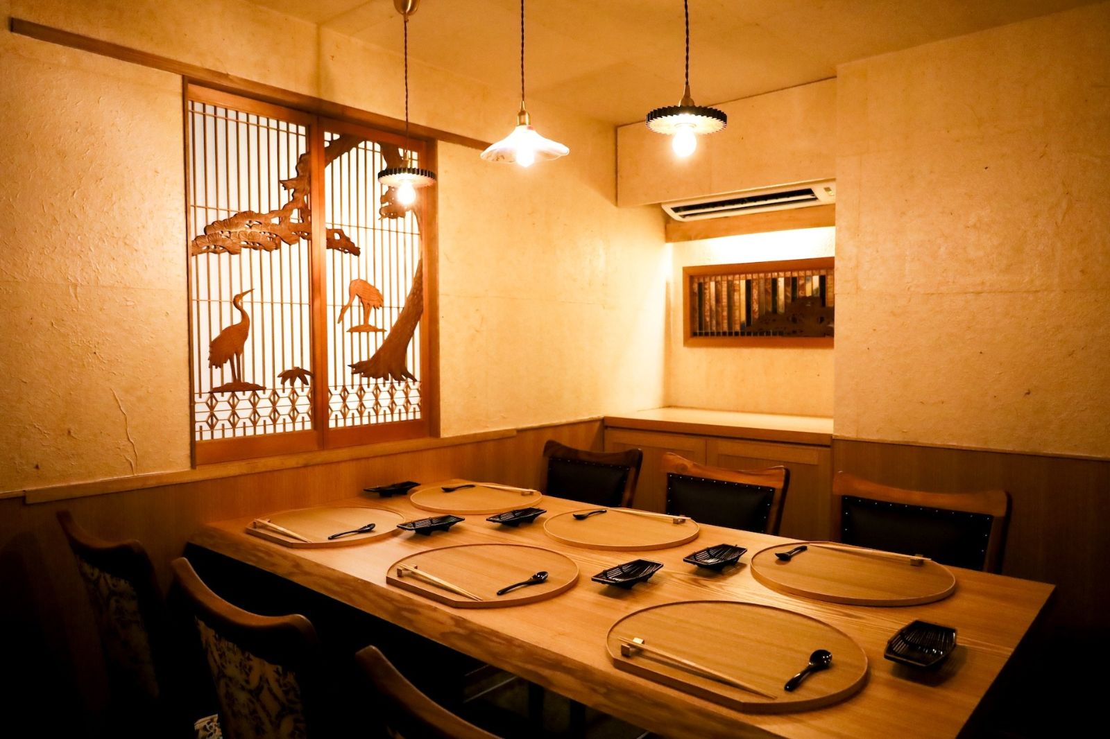 器は季節や料理に合わせて巧みに選ばれ、一皿一皿がまるでアート作品のように映えます。幅90cmの一枚板カウンターでは、料理人の所作や音、香りまでもが“味わい”の一部に。一方、完全個室では静けさに包まれ、ゆったりとした上質なひとときを過ごせます。