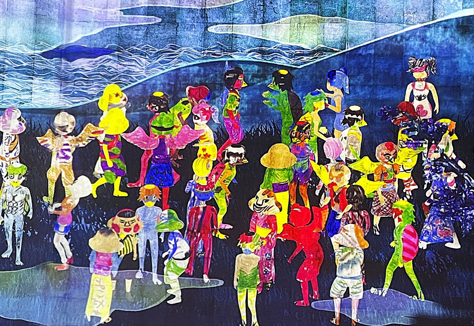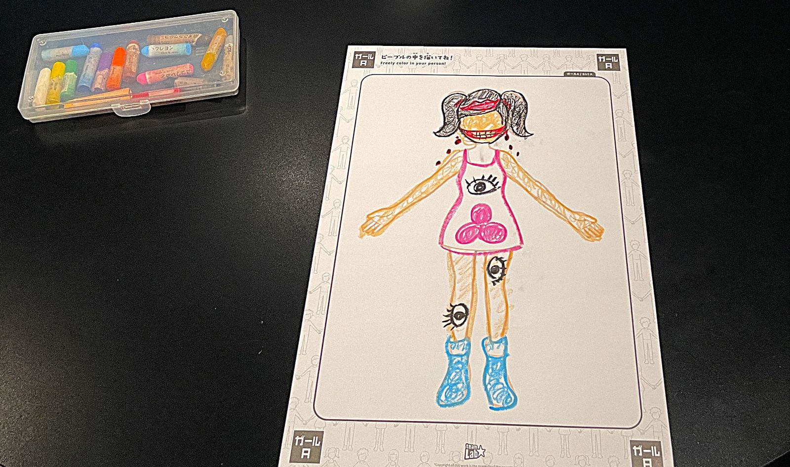 しかもタッチするとピュッと反応してどこかに行ってしまう......同様にクレヨンと紙を渡された女性も夢中になって妖怪を描いています。
