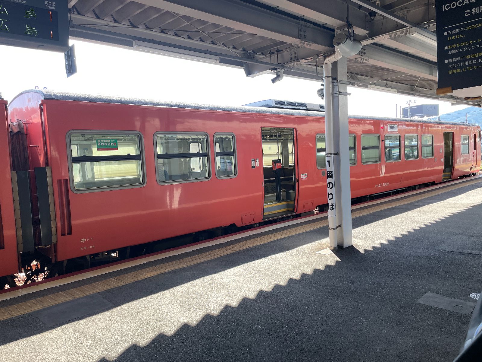 前回はひとりだったけれど、今回は従妹のMちゃんと乗った。広島駅で待ち合わせをして、芸備線で、広島駅から三次駅まで乗った。