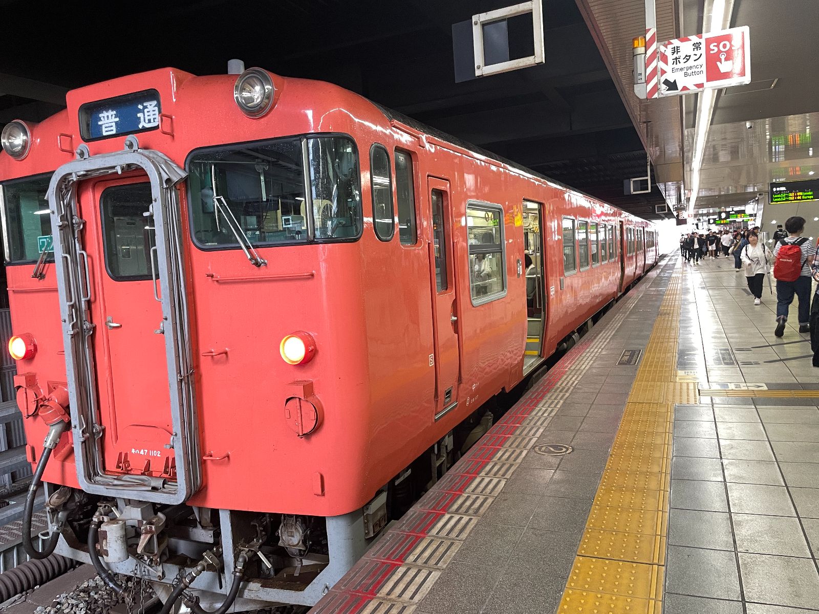 芸備線は、広島駅から~下深川駅までが乗客数のピーク、実際、沿線の学生が乗り降りして日常で使われている様子だった。なので、広島ー下深川間は、一時間に数本程度最終の23時51分、下深川駅着まで、確保されている。
