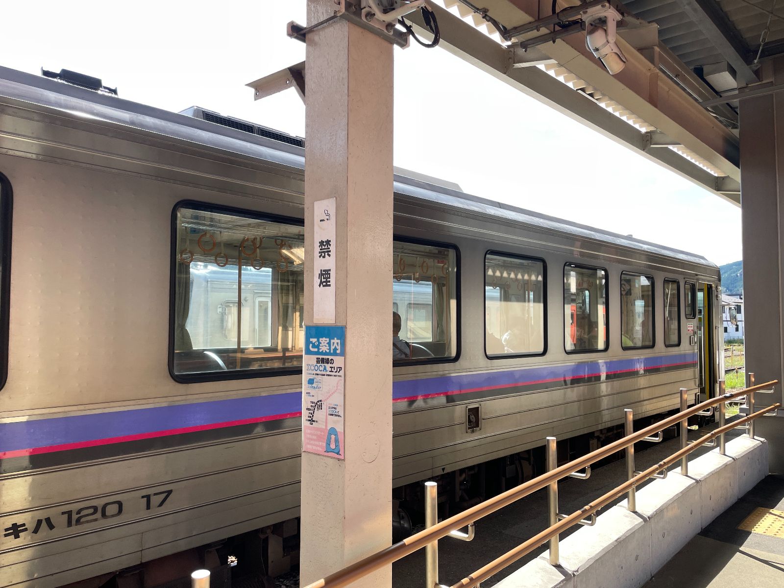 キハ120形、とは、キは、気動車のキ、ハは、普通列車を表す、そう、全く知らなかったです。架線もパンタグラフもなし、その上、1両編成だと、列車のデザインが際立って、記憶に残りやすいですね。後付けですが......!