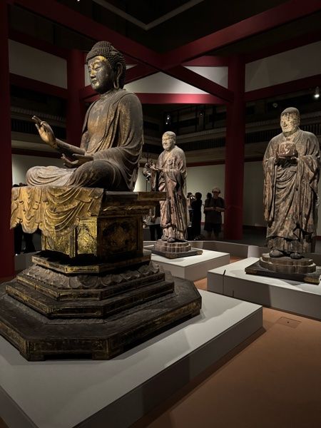 本展では、北円堂の弥勒如来像 、無著・世親像に中金堂の四天王立像を加え、鎌倉復興期の北円堂内陣を現代に再現している点も見どころの一つです。