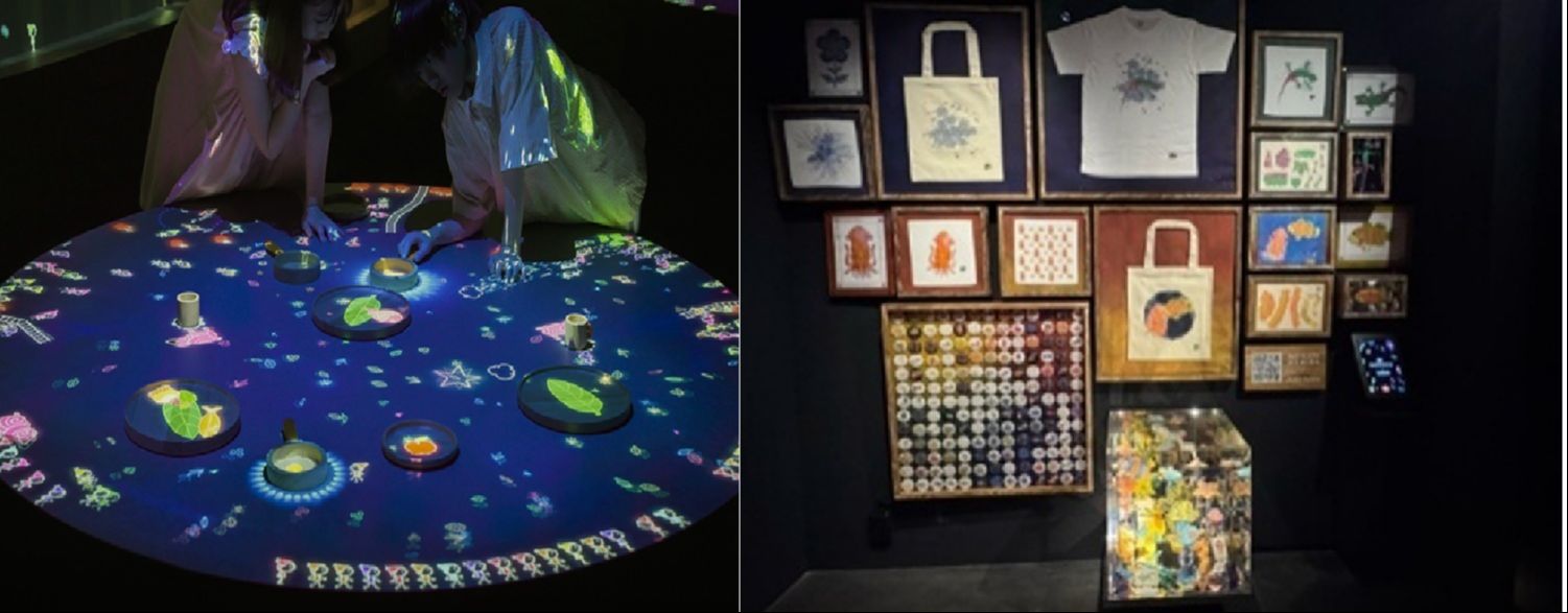 《生と回帰の無常の抽象》は、生命の循環と儚さをテーマにした幻想的な作品です。形や色彩が絶えず変化し、まるで生命の息吹が空間の中で躍動しているかのような表現が特徴です。実際に作品の展示エリアに入室し体験することができます。