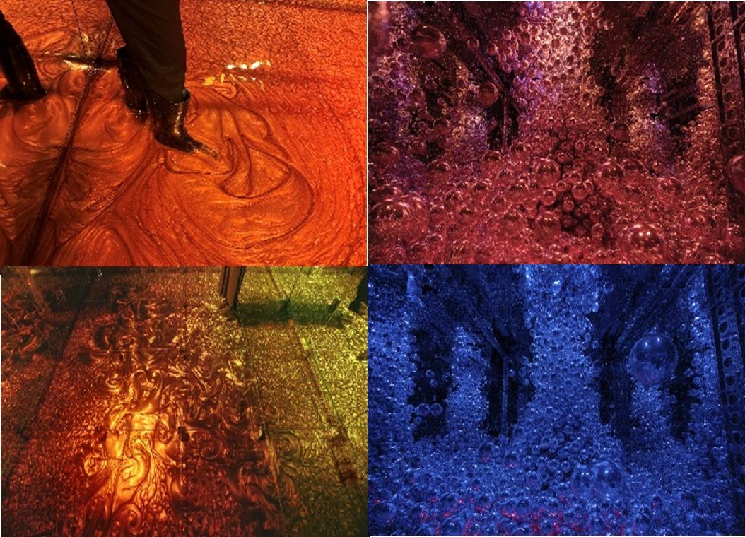 《変容する連続体》は、形や色がゆるやかに変化し続ける作品。まるで渦のような動きに引き込まれ、泡に包まれるような感覚に。空間そのものが生きているような、不思議な没入体験が味わえます。色の変化でも印象が変わります。