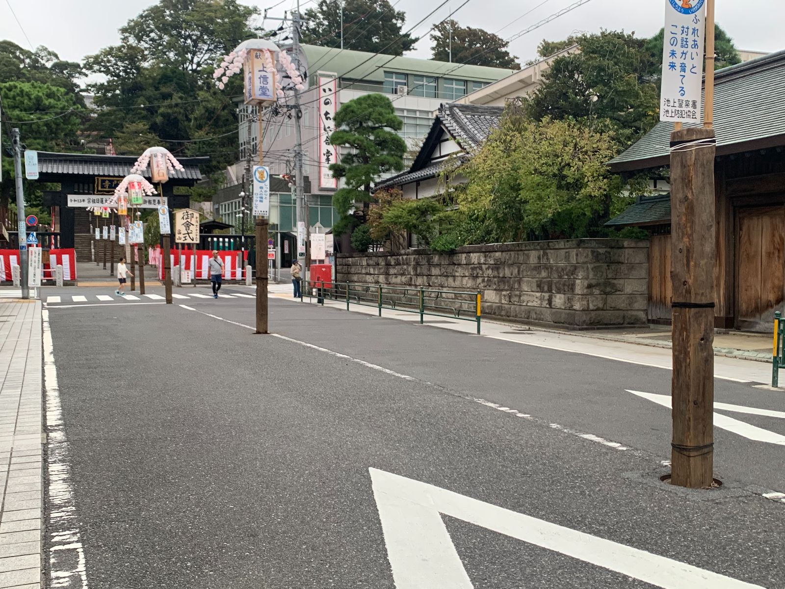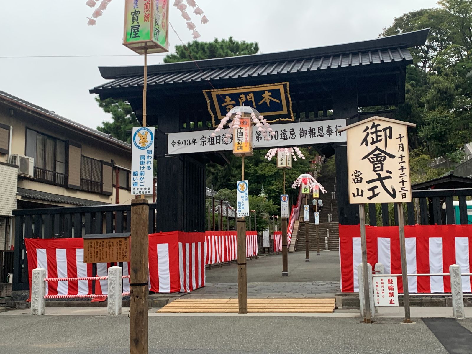 いつもの早朝、すれちがうのはお散歩のワンコやランニング・ウォーキング中のみなさんが多いですが、商店街ではすでに屋台の準備がはじまっていました。参道や境内いっぱいに屋台が並ぶ様子――思い浮かべるだけでワクワクします。御会式限定で屋台をだす地元のお店もたくさんあるので、さてこの3日間は何食べよう……。あれこれ考えながら本門寺へと歩きます。