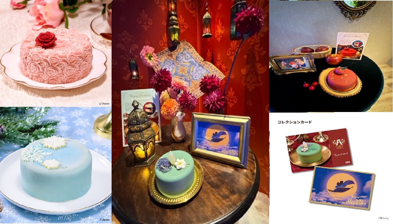 それぞれのケーキには、作品のワンシーンを切り取ったコレクションカード付きです。(※画像はアラジンのコレクションカード)