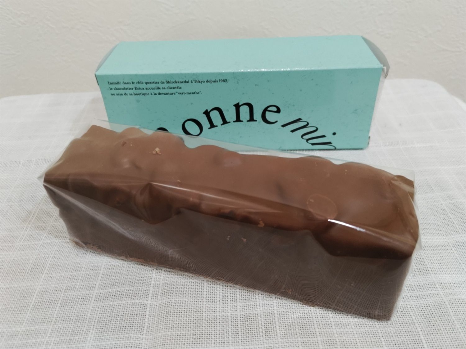 このほか、葉っぱの形のミントチョコやハート形のラムレーズンチョコもすごーく魅了的でしたが、ぐっと我慢して今回はチョコレートのブロックを我が家のお土産に。