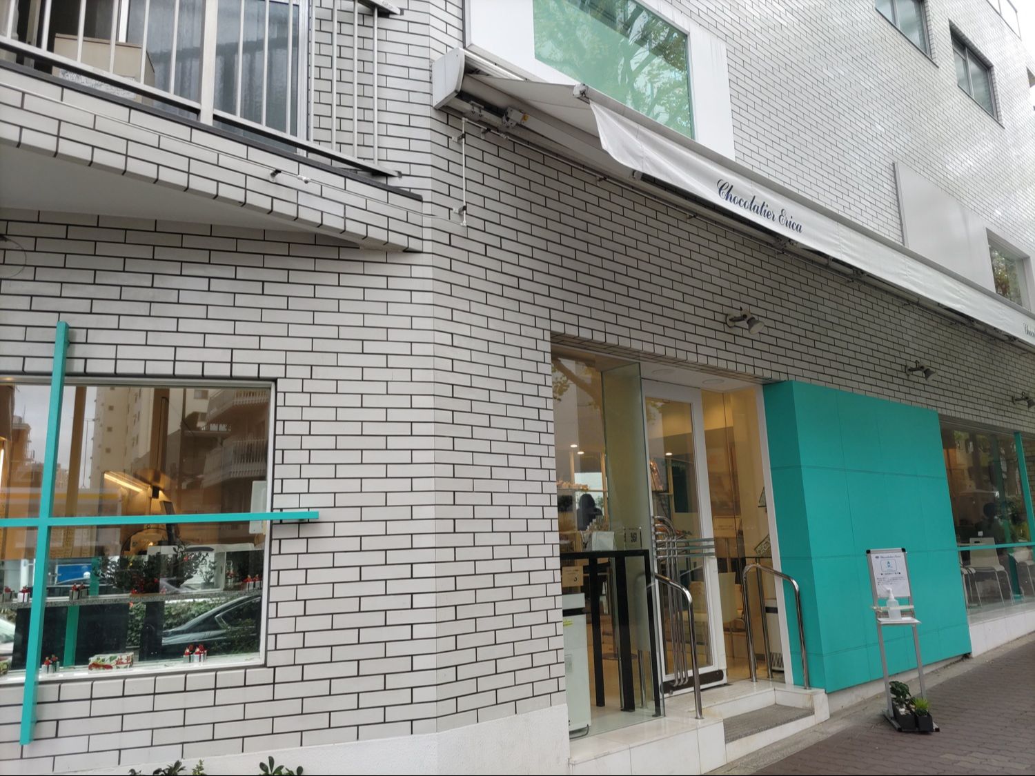 白金台駅からプラチナ通りの上品な街並みをのんびり歩いて数分後、ミント色のかわいらしい店舗が見えてきました。