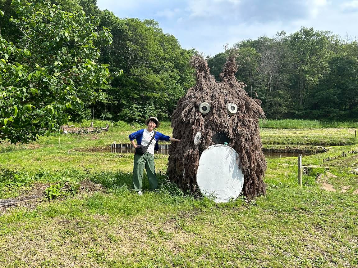 八幡湿地といえば、あの世界的に有名なアニメ映画のモニュメントに出会える。