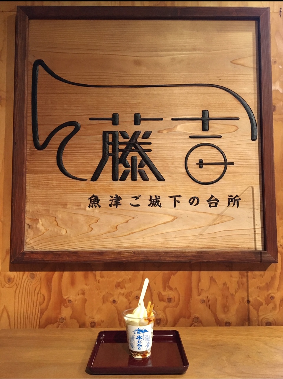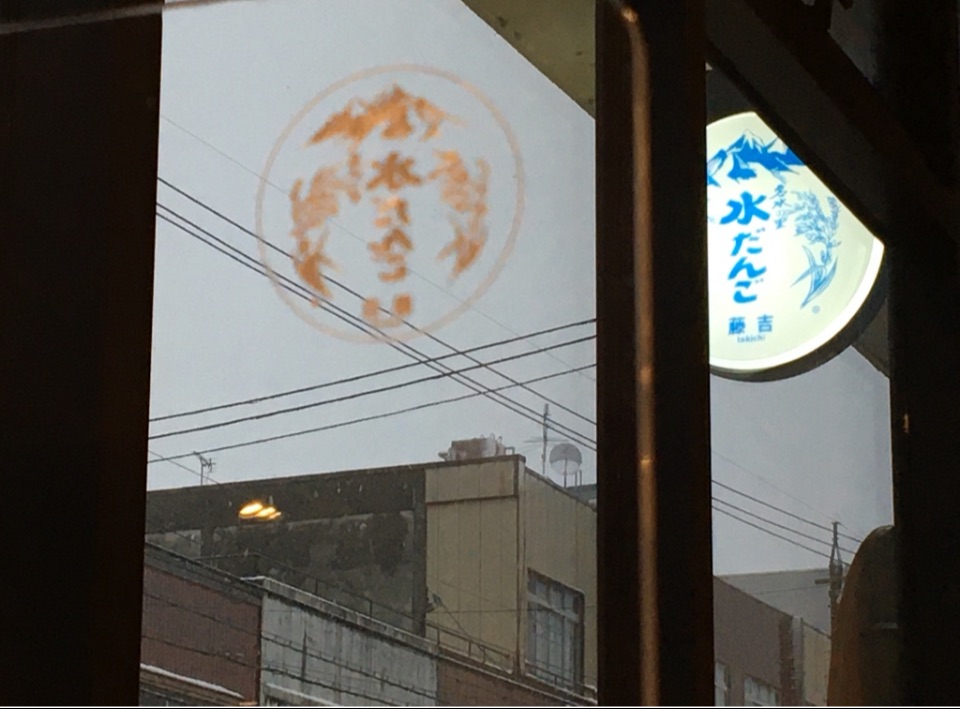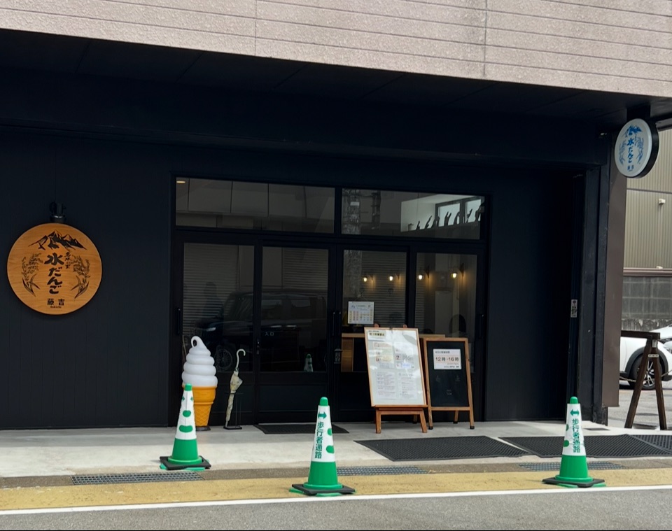魚津に来たならやっぱり本店に行って、本店でしか食べられないものを食べたい…ということで、水だんごの上にソフトクリームの乗った「水だんごパフェ」を食べます。