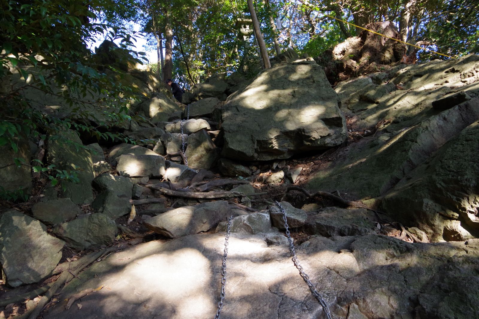 鎖場のある参道なんて、秩父の三峯神社や奥多摩の御岳山の奥宮や奥の院を今まで参拝した勢としては、こんなことでは怯みません。