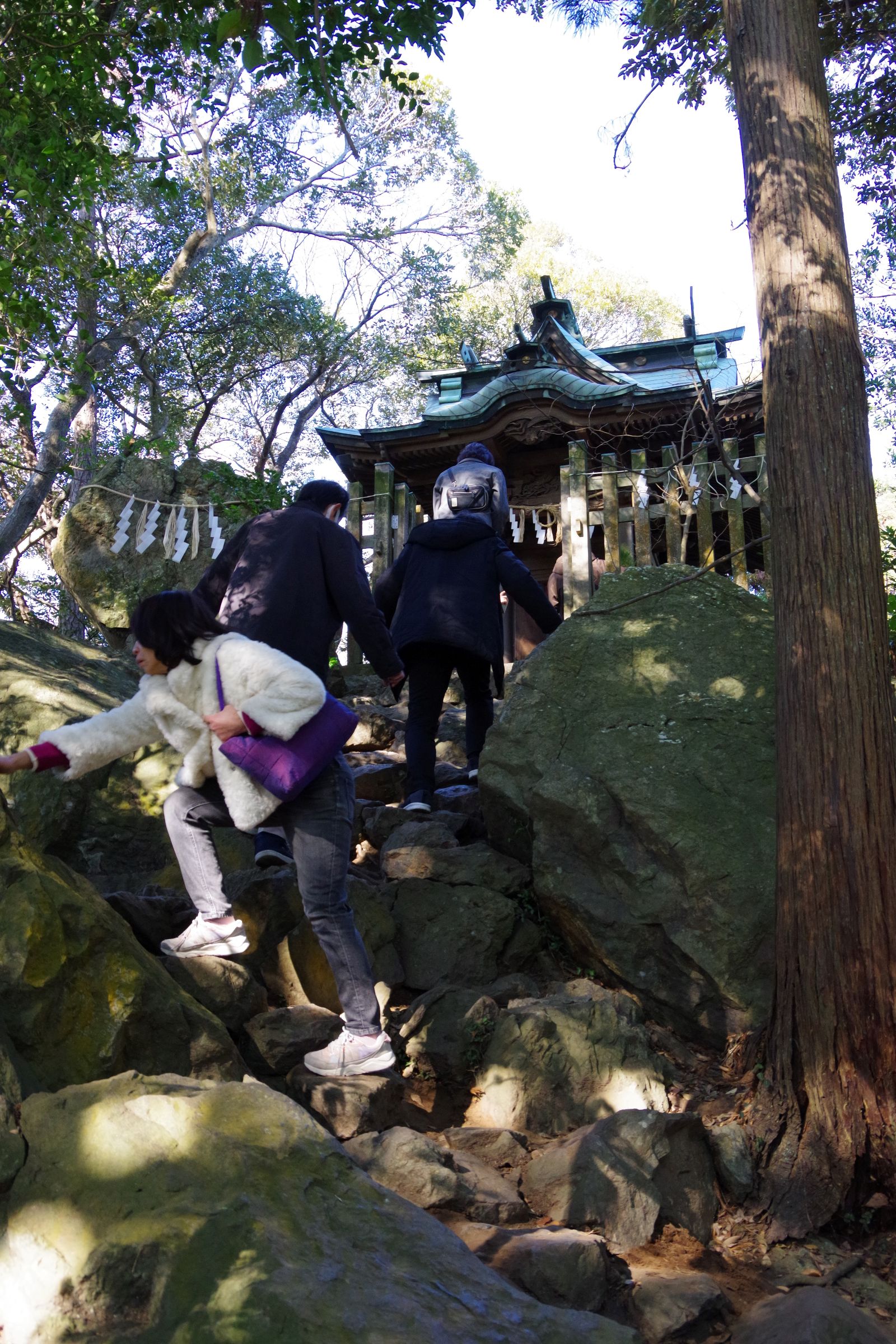 前日に雨振ってなくて良かった。。。そう思いながらも、苔むして固定されていない岩山の上を踏みしめつつ登りきり、無事参拝することができました。