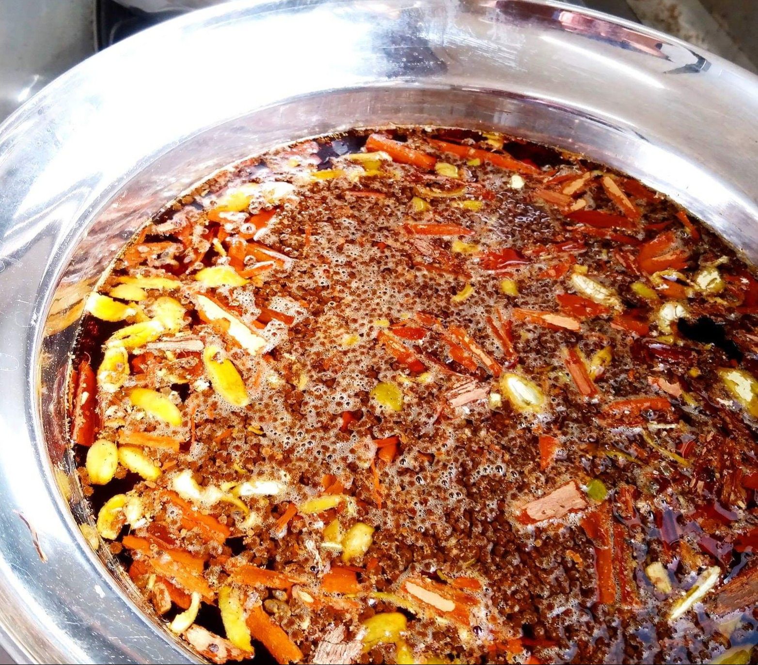 うどんすき鍋にスパイスと紅茶と水を投入して、静かに静かに煮出します。