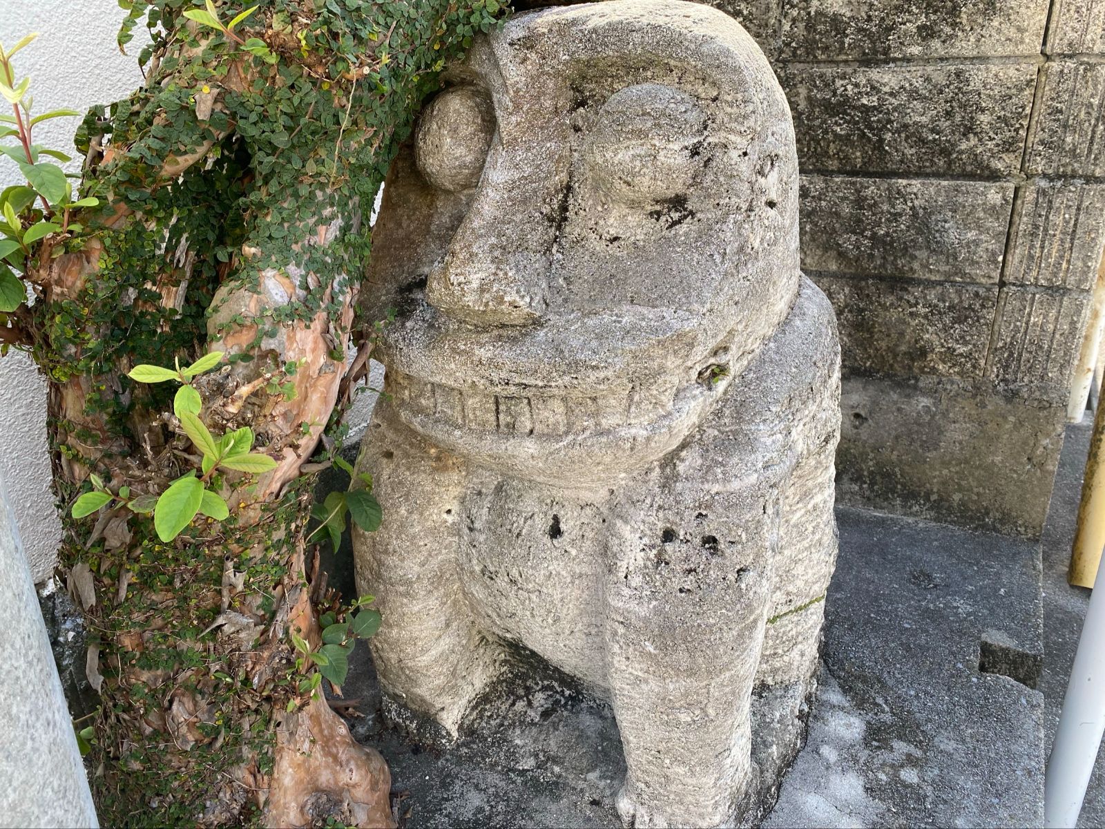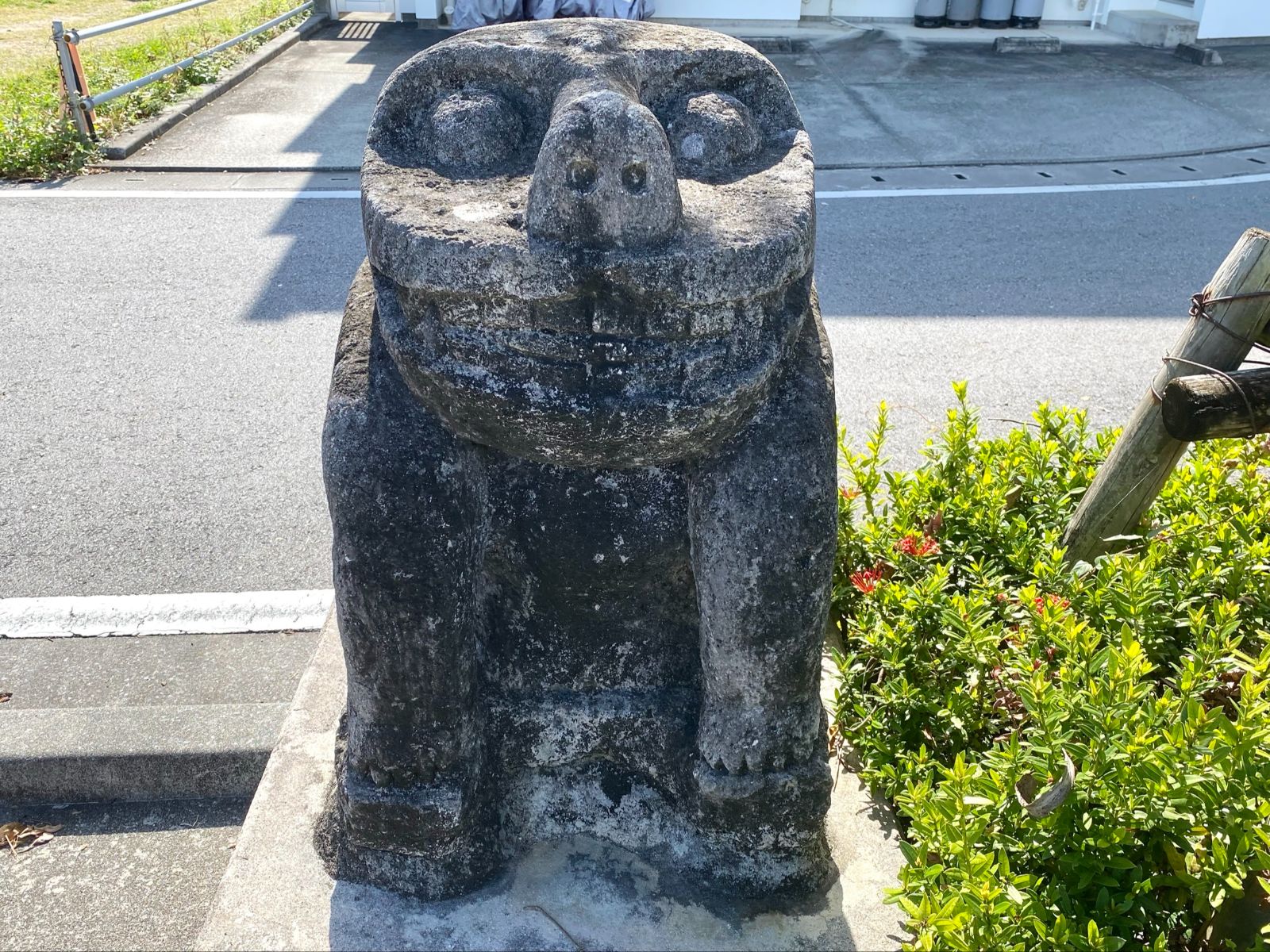 ところが、私の街にいる彼らは、どう贔屓目に見てもライオンではない。かといって、内地(本土)の狛犬とも違う 。ツルンとした頭に、まん丸の目。どう見ても「猿」だ。