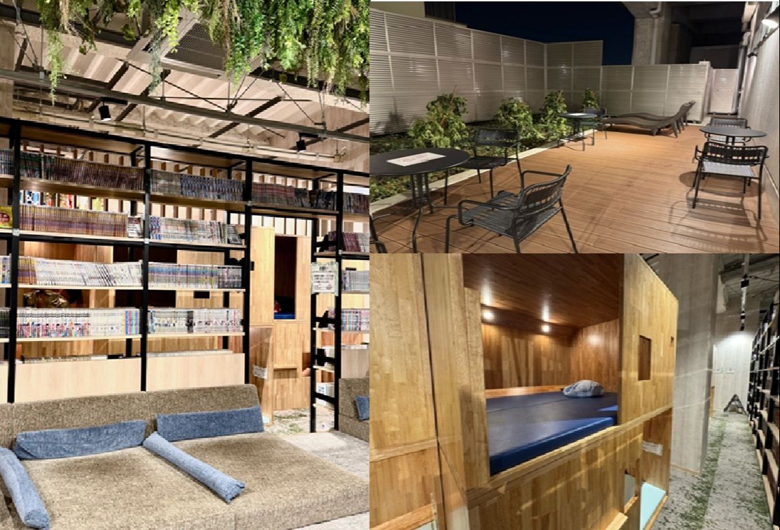 休憩エリアはカフェのようにおしゃれで、8,500冊以上のコミックが読み放題。リクライニングや半個室、カウチソファ、カップルシートなど、自分のスタイルに合わせてゆったりくつろげます。コワーキングスペースやPC・電話ブースも完備しているので、仕事や勉強にも便利。