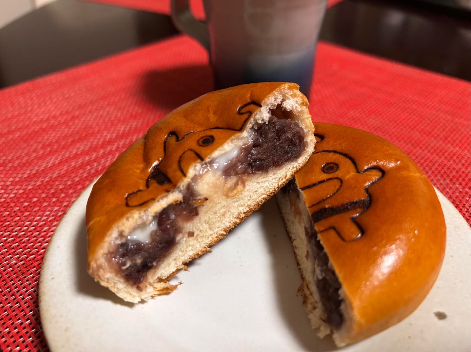 ただのあんぱんなら買わなかったが、その焼き印された絵柄の可愛さに惹かれて、お土産に一つ買った。