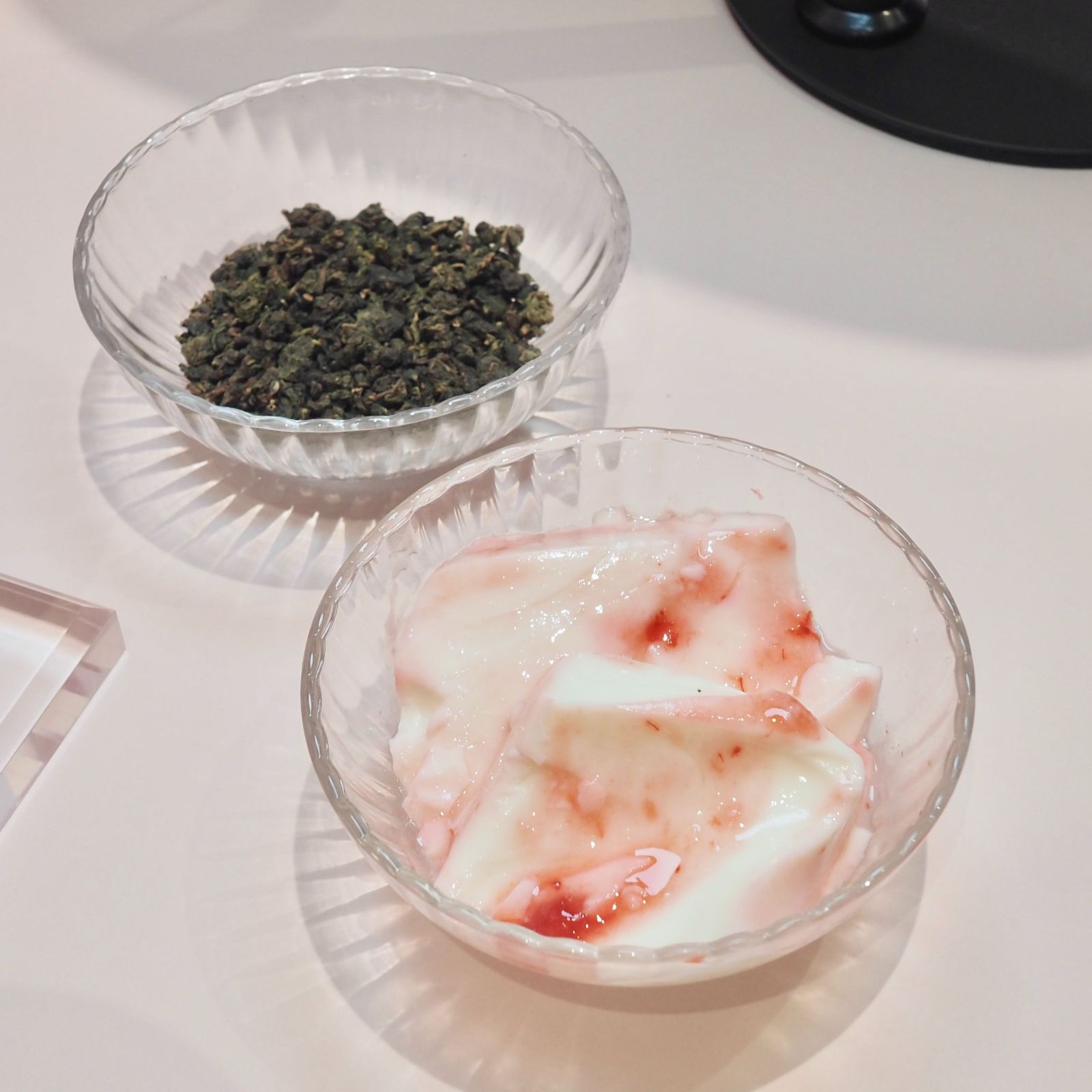 すっきりとした風味とフルーティな香りの阿里山ウーロンティーが、とろぷる食感の杏仁豆腐と甘酸っぱいストロベリーソースを引き立てます。甘すぎないところが、またこの季節にもぴったりなんですよね。