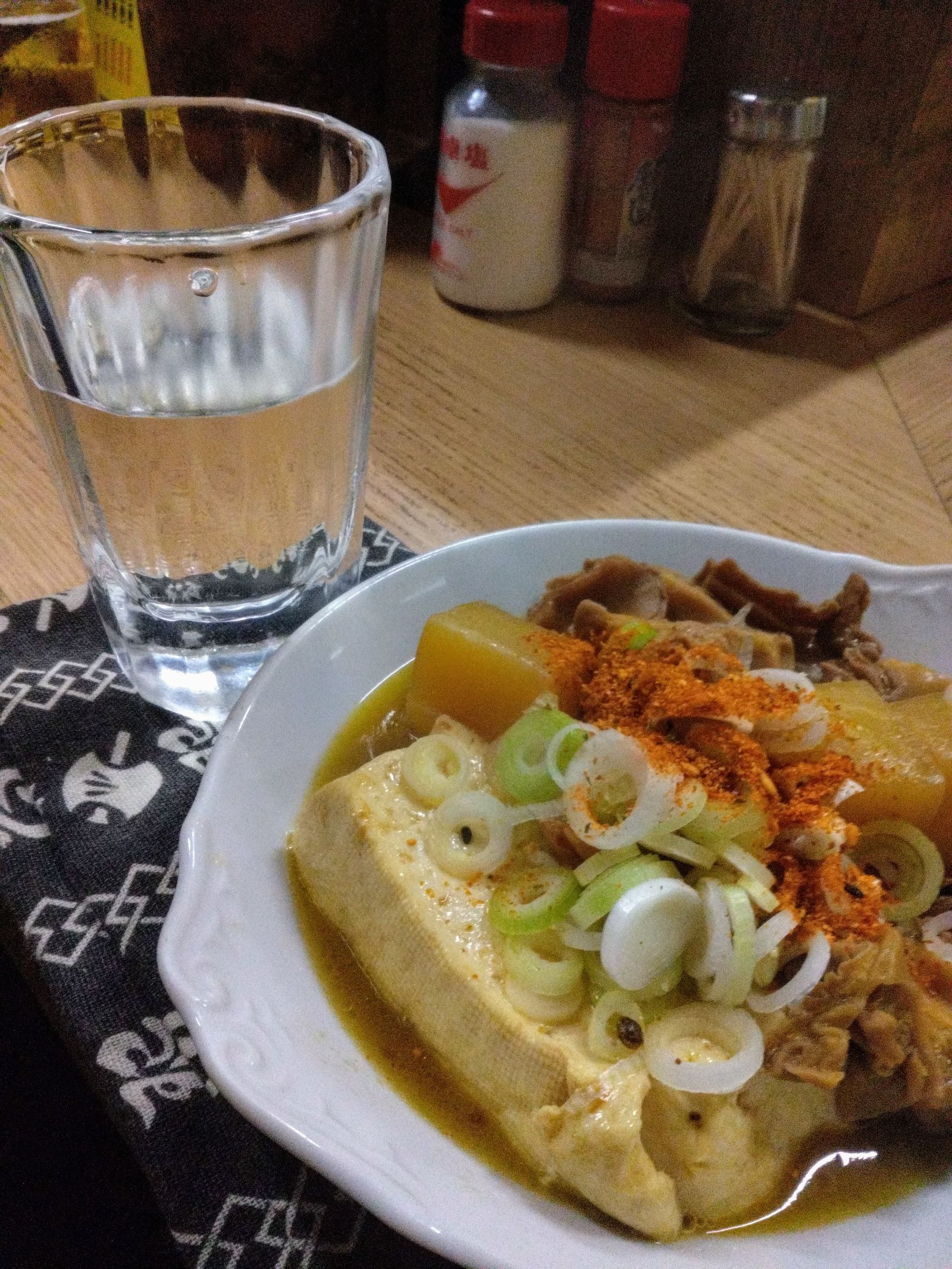 さて、吾輩もいざ大統領へ。『お客さん、一人』「はい」。コの字カウンターに滑り込めた。注文は、二級酒と煮込み。大統領の煮込みは、豚モツ、牛モツではなく、馬モツだ。「うん、うまい」。書きたかっただけではない、臭みなどまったくなく、旨味がつまったモツにコンニャクと味シミシミの豆腐が抜群のハーモニーだ。なんといってもコの字カウンターの佇まい、店員さんのテキパキとした対応、そんな空間に自分もお邪魔させていただき、店の雰囲気の一部を作っていると思うと、酔いが回るのも早い。