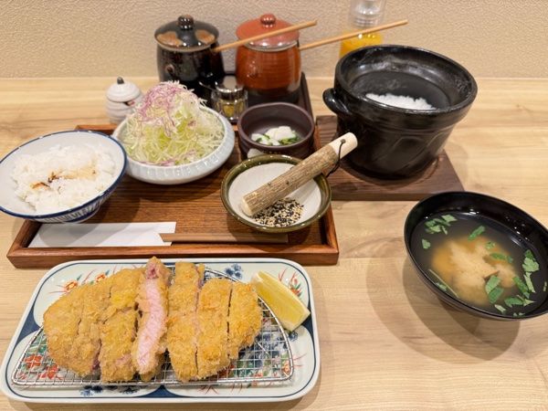 注文ごとに一釜ずつ炊き上げる土鍋ご飯は、炊きたてならではの香り、甘み、粒立ちの良さが魅力で、とんかつとの相性を最大限に引き出します。