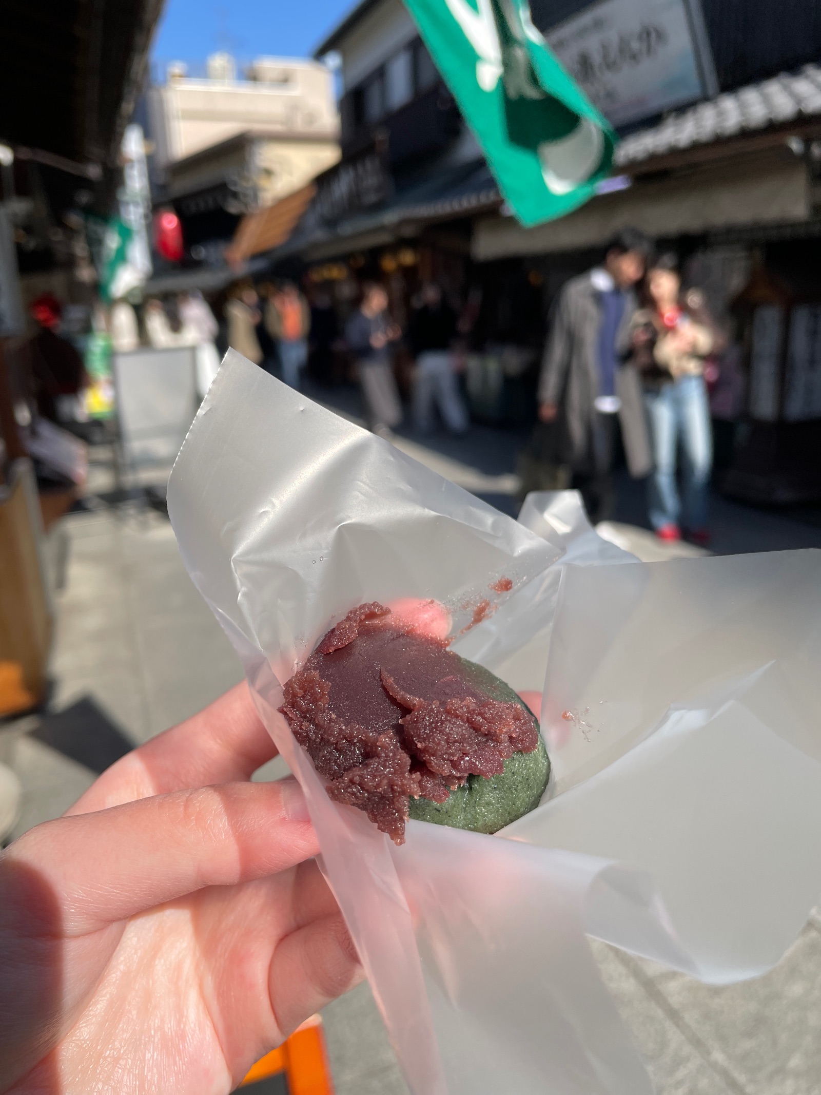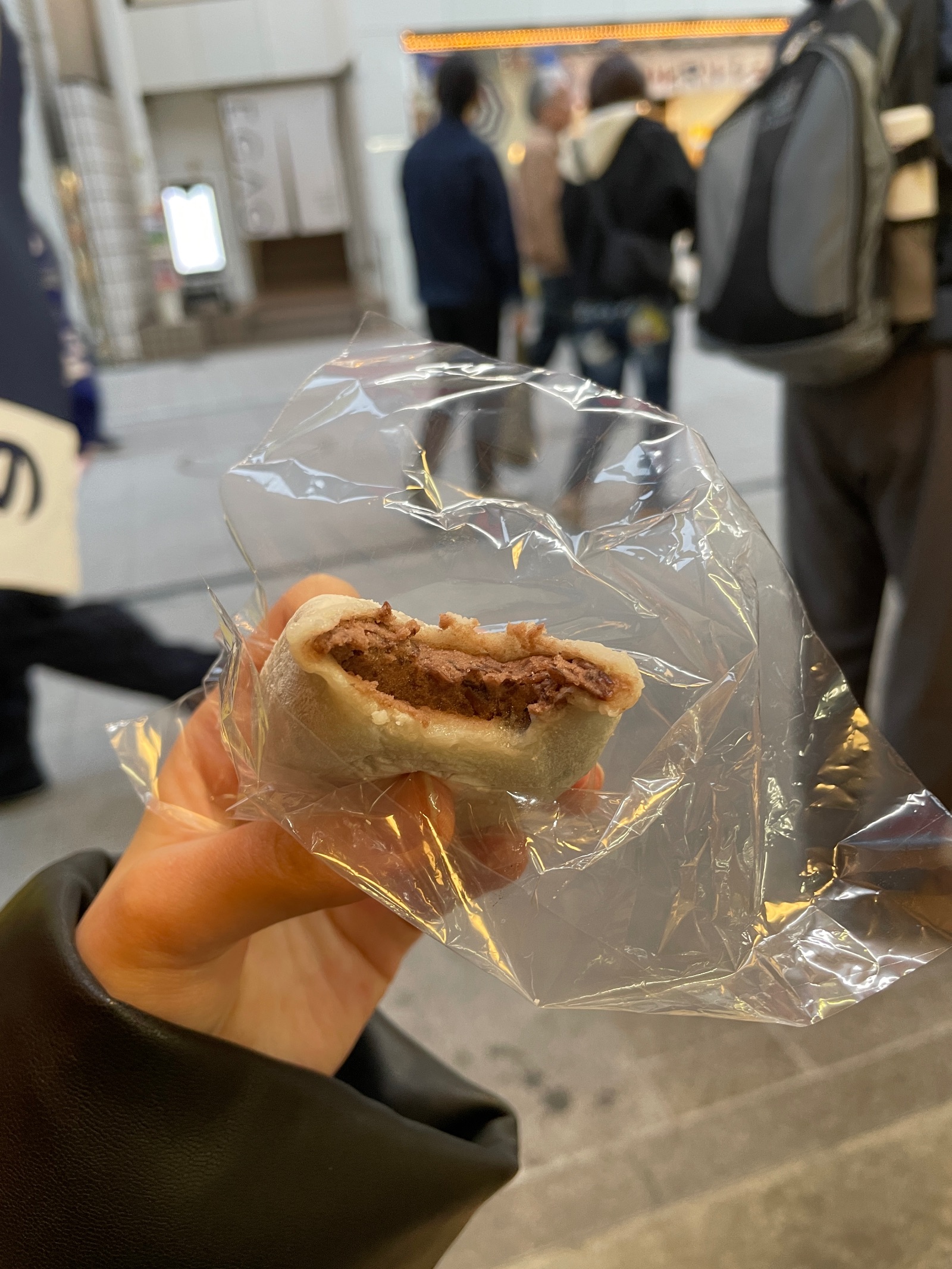 塩気がある上品な粒あんが、薄い楕円のお餅に包まれています。