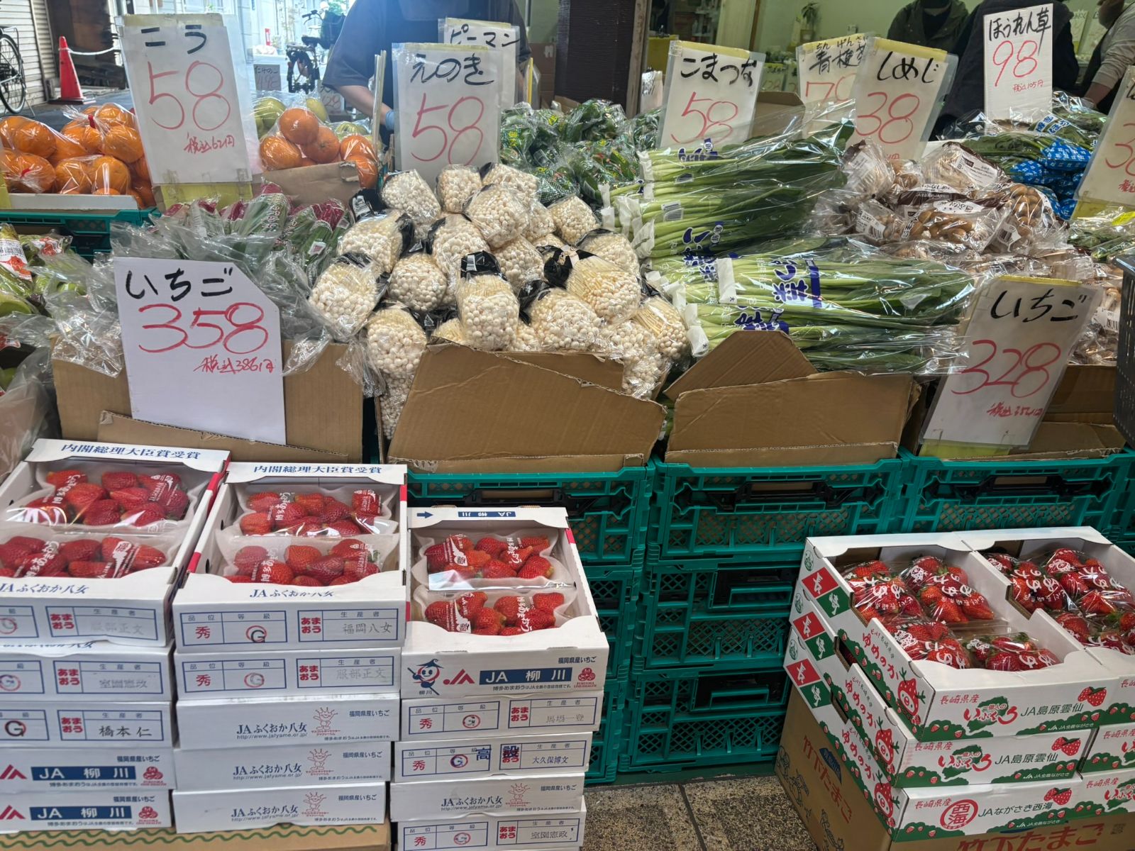 駒川商店街を歩いていると安い物が路上に野菜が販売しています。例えば物価高の時代に2桁料金の野菜が並んでいてスーパーよりお得に野菜が買えます。日常で使える野菜が安いのはとてもすみやそうです。