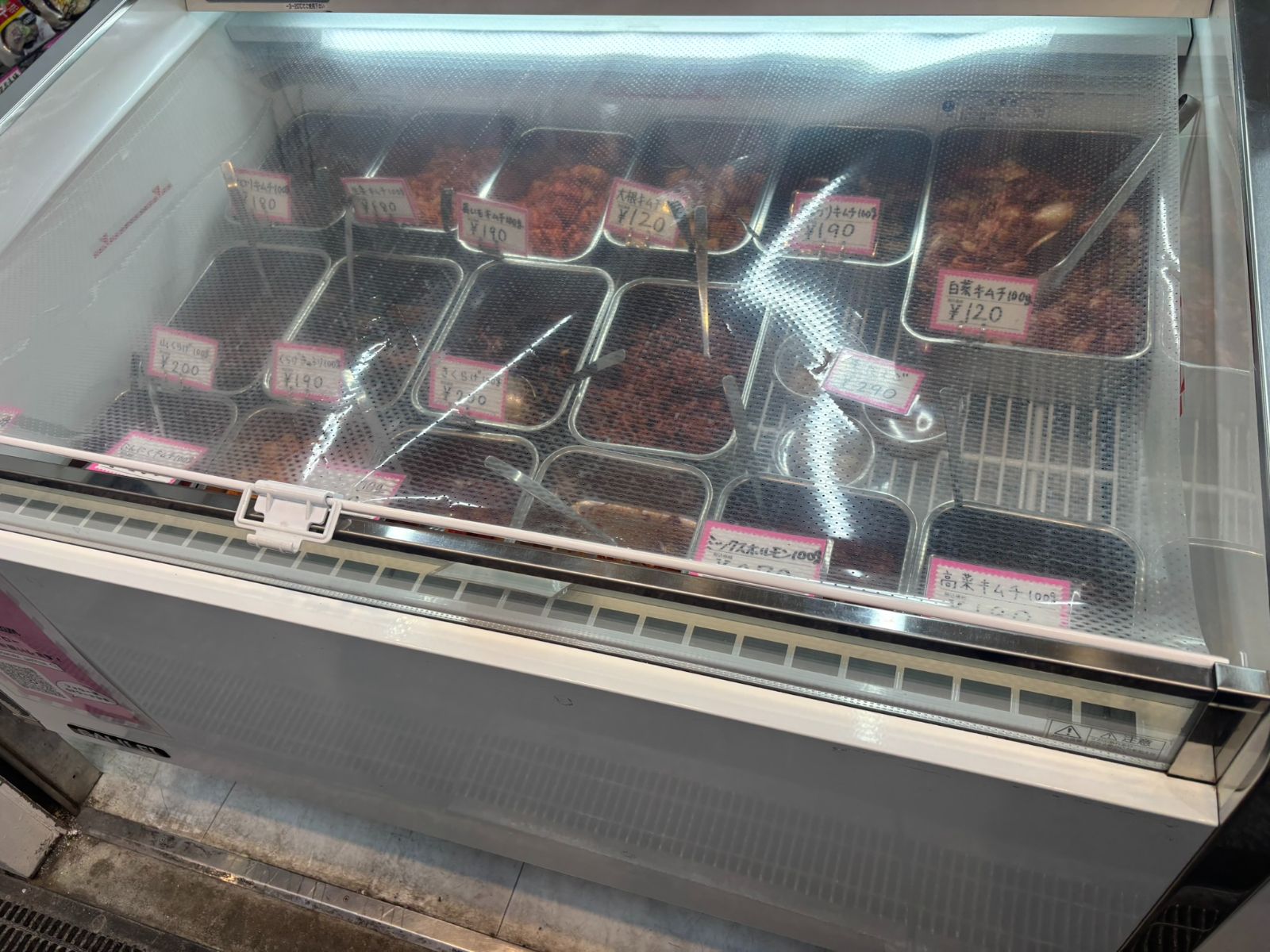 そして珍しいものも多いです。画像は韓国料理のお店で、珍しいキムチを販売しています。また、中国系のお店も増えてきました。これだけ楽しくショッピングができる駒川商店街、機会があればぜひ住んでみたい町でした。