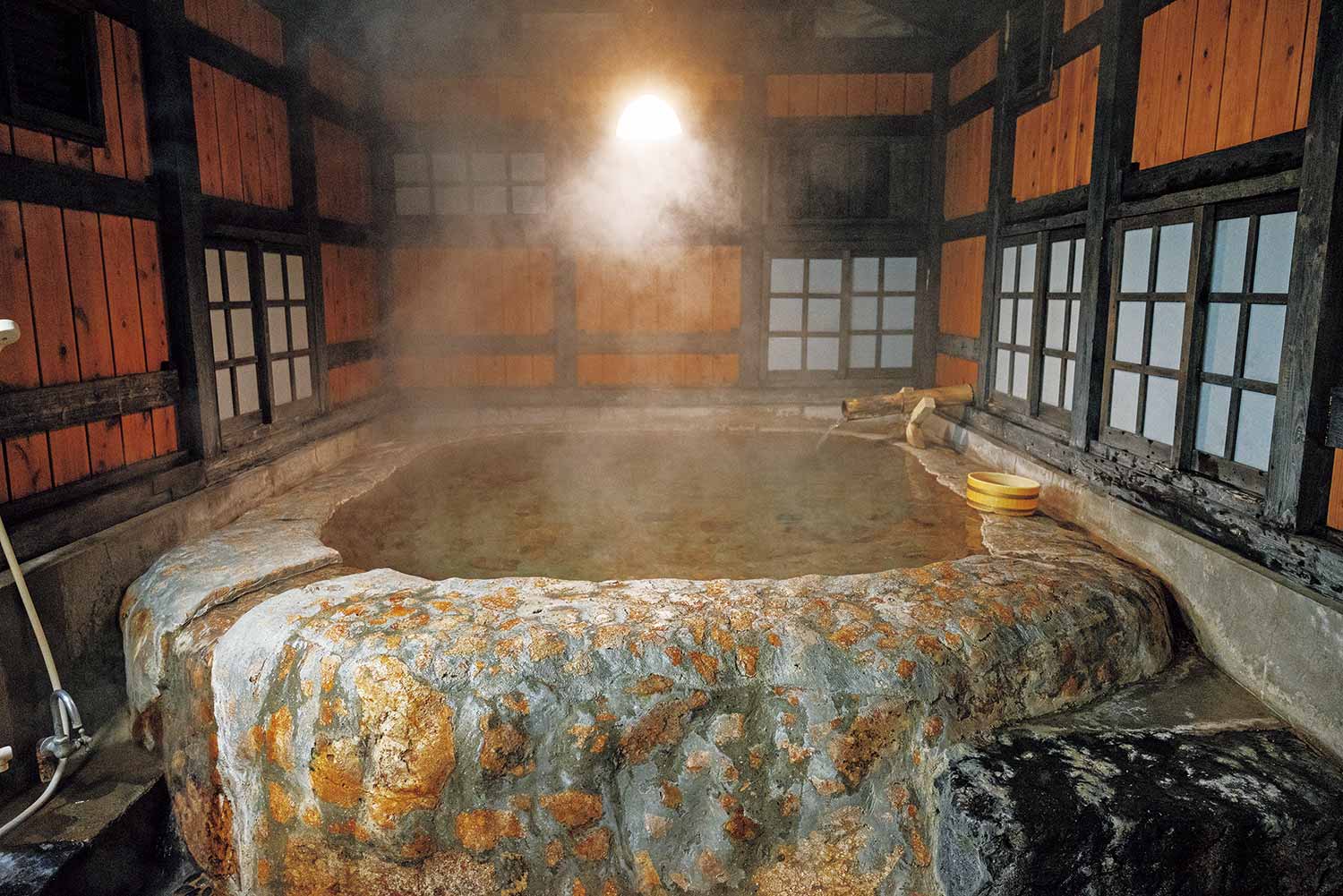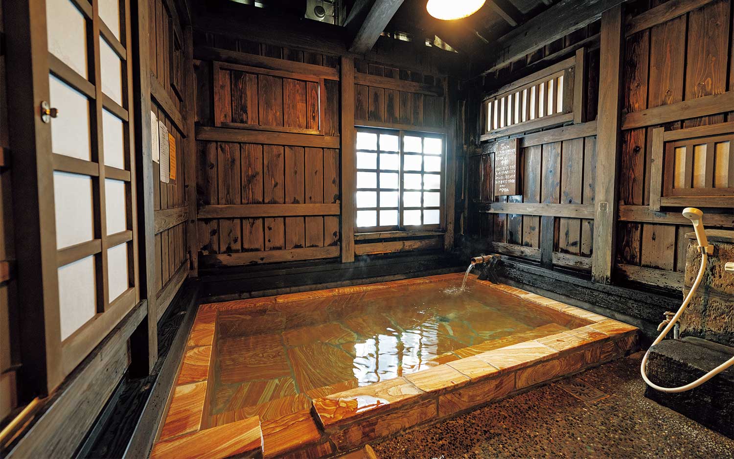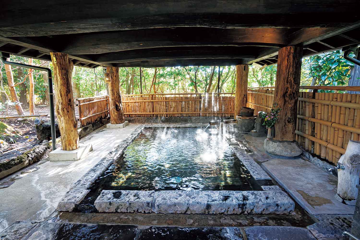 「あれは難しかったなあ」と幸隆さんは振り返る。人工物はシャワーやカランなどの最低限に抑え、目隠しに竹や、木の屋根を支える支柱に切り出したままの丸太など、自然物を使っている。脱衣所の窓枠も木で、癒やしの風呂とはまさにこういうものをいうのだと合点がいく。