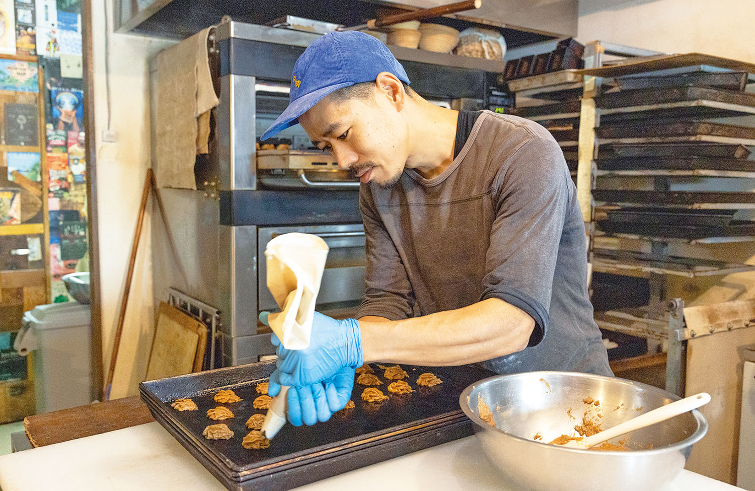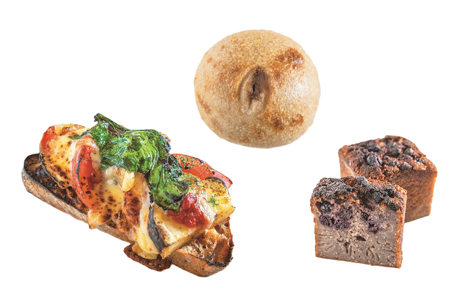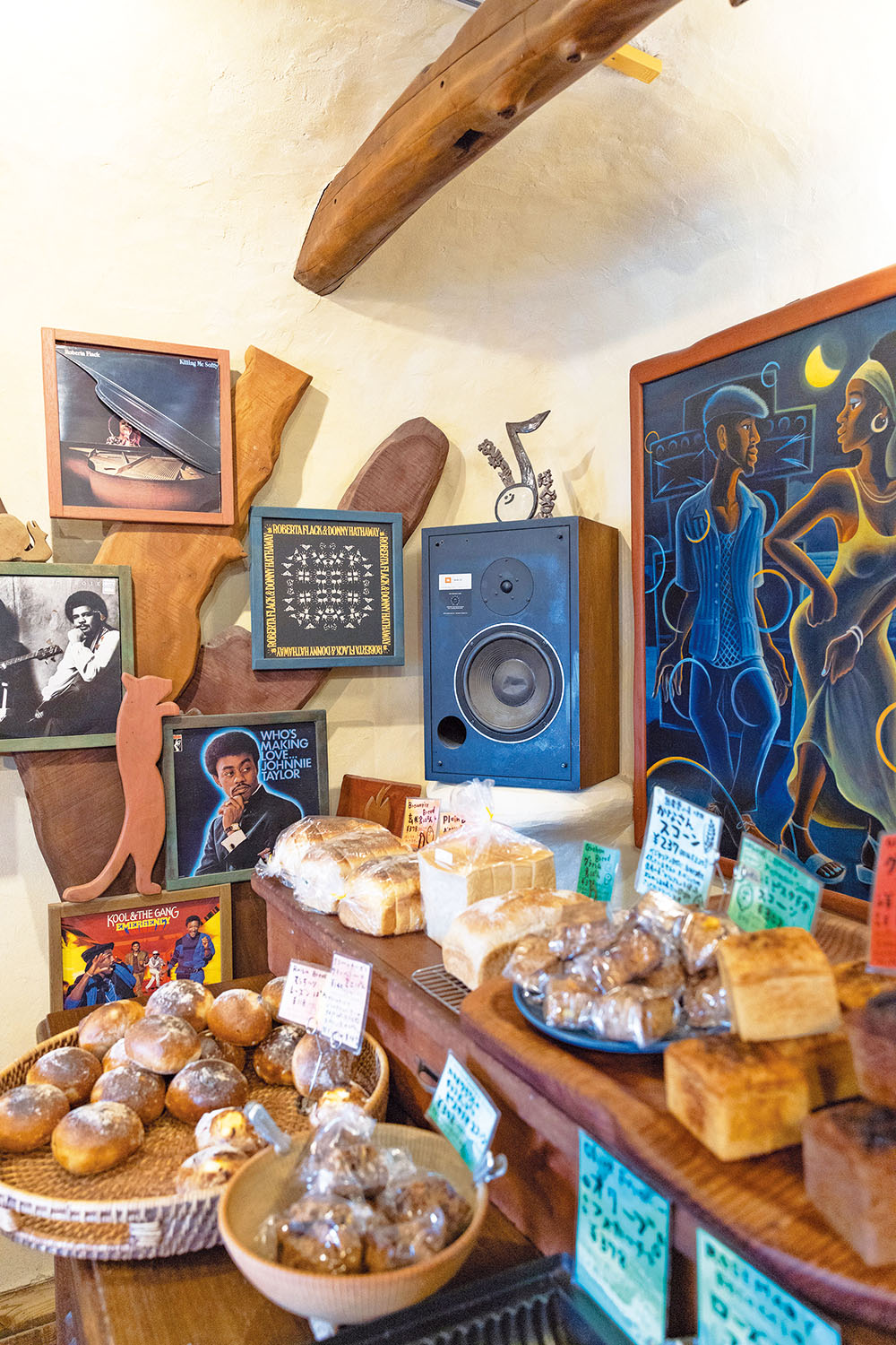 石臼で碾(ひ)いた小麦粉と水、沖縄の無農薬玄米と紅いも、黒糖、小麦粉を約20年かけ継いだ自家製の天然酵母、沖縄の海塩を使用し、手作りのレンガ窯で焼き上げたパンは滋味深く素朴な味わいで、疲れた心にそっと寄り添ってくれるよう。イートインも可能だ。