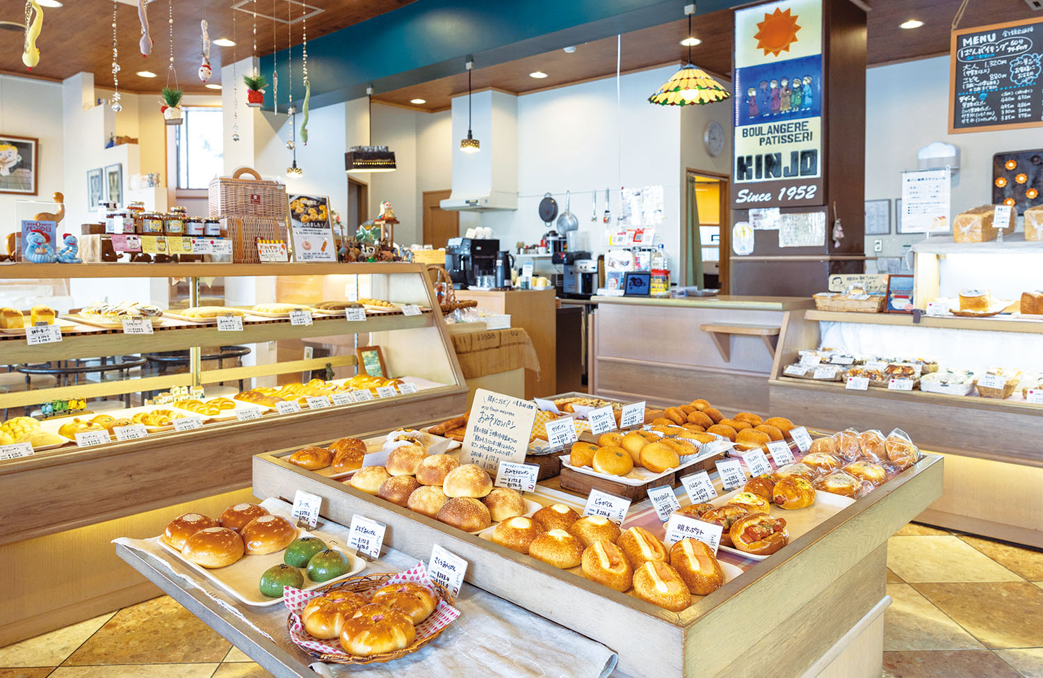 店内にはイートインスペースも。1時間パン食べ放題のぱんバイキング1320円(子どもは880円)もあり、特に週末は朝の8時からファミリー層でにぎわう。